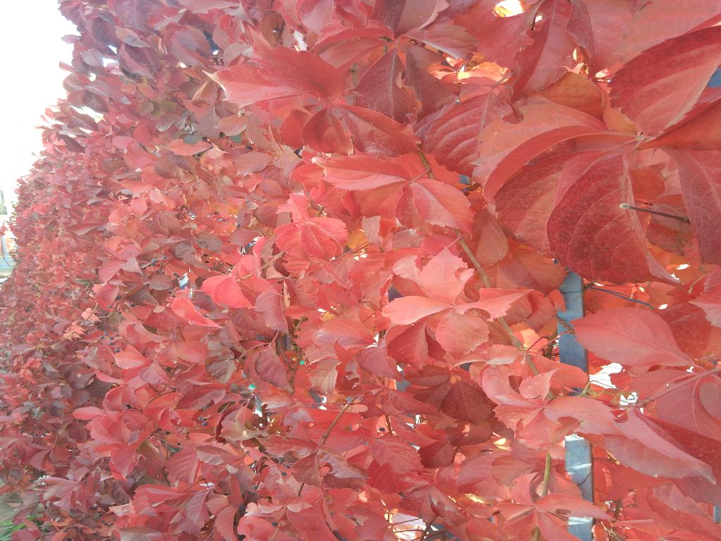 随着天气渐渐变凉,爬山虎叶子中的叶绿素渐渐消失,叶子中逐渐变成了叶红素的世界,绿色爬山虎也就变成了红色爬山虎了。火红的叶子,在像我们喧示着,秋天是红色的!