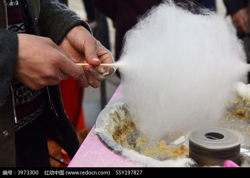 老伯把砂糖倒入一个像碗的容器里,然后转啊转,不一会儿就成了一个大大的棉花糖,圈成的棉花糖还有各种颜色,有粉色,黄色,蓝色等等.透过层层薄纱似的糖,梦幻般的色彩让人仿佛在天空中飘荡.老伯伯把做好的棉花糖一个个拿给我们"一个一个来,不着急啊."他笑呵呵的说着.