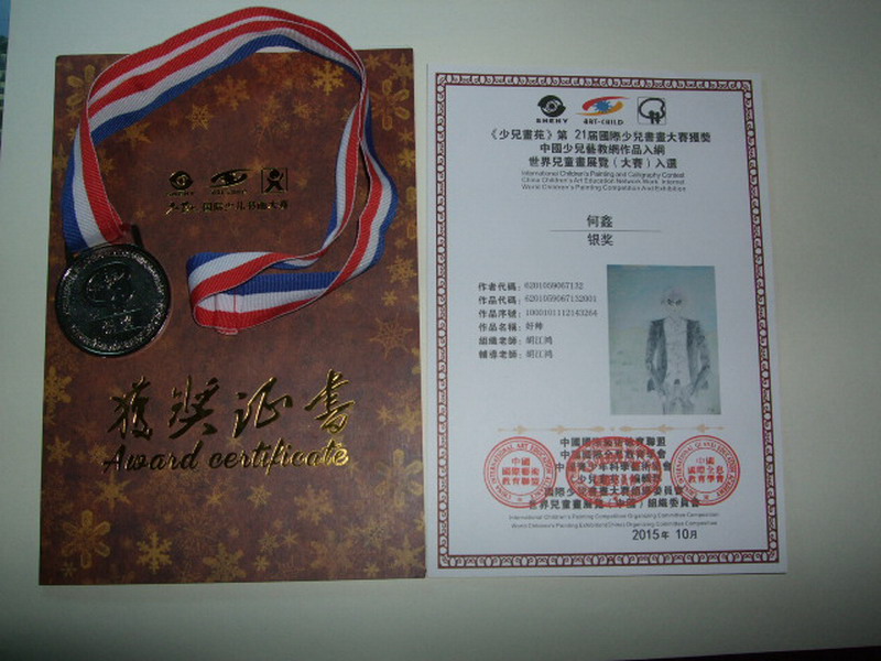 我不仅喜欢画画,还喜欢参加各式各样的比赛。就最近我在国际儿童书画大赛《儿童书苑》脱颖而出获得了银奖。我觉得画画是一种高雅的艺术,并且我和画画结下了不解之缘,它已经伴随了我六年,这份感情是不言而喻的,将永远伴随着我。