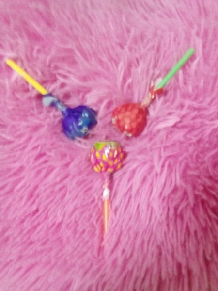 不同的口味有不同的颜色,比如:蓝莓味是紫色的,草莓味是粉色的,苹果味是绿色的等等,我喜欢吃蓝莓味的棒棒糖也是因为他是紫色的,我最喜欢紫色了。