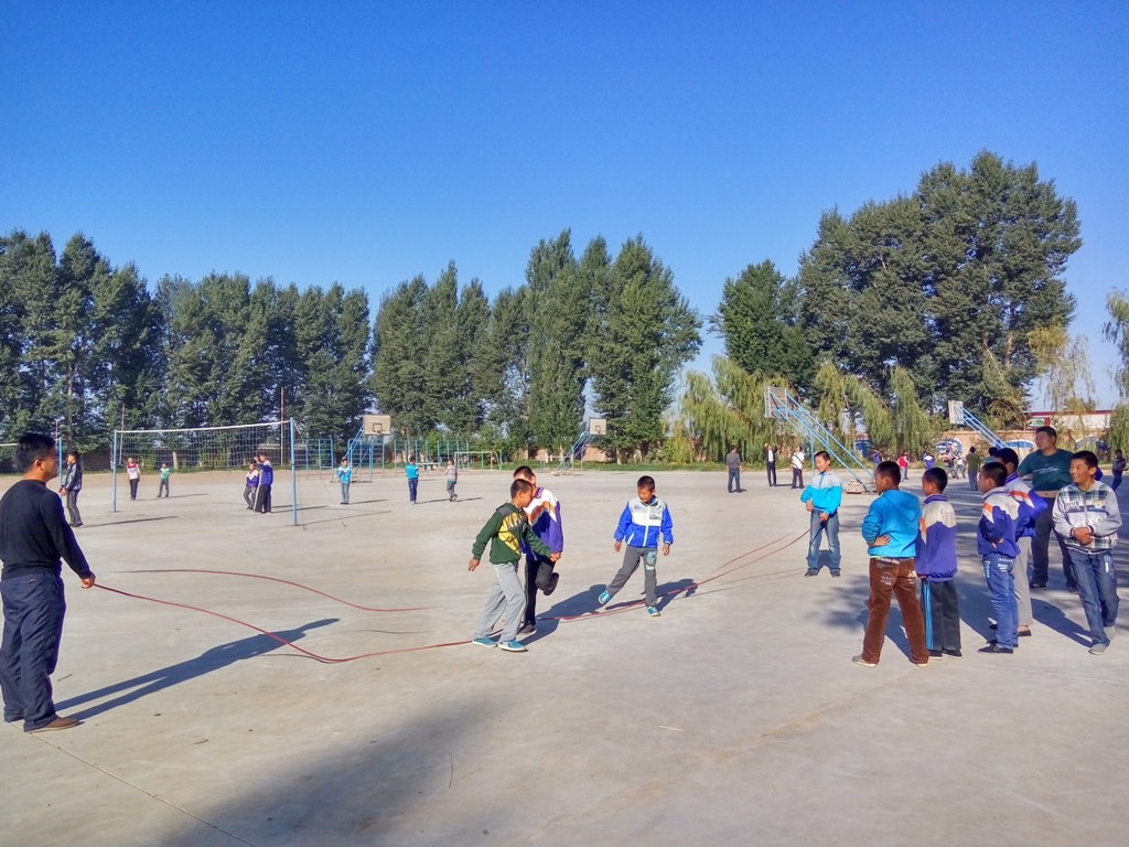 今天早上,阳光灿烂,我们在操场上参加大课间活动。大课活动内容丰富:打篮球、打排球、踢足球、踢毽子、跳绳、跳皮筋、打羽毛球、打乒乓球等,同学们可以自由选择自己喜欢的项目进行活动。