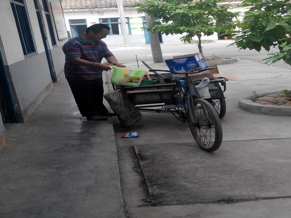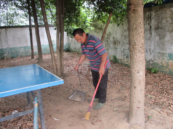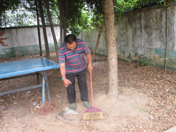 一辆三轮车,一把扫把,一个撮箕,那在我们复兴学校的校园随处可见的身影,那一双大大的,粗糙的手每天都辛勤的劳动着,他就是我们学校的清洁工——刘爷爷。