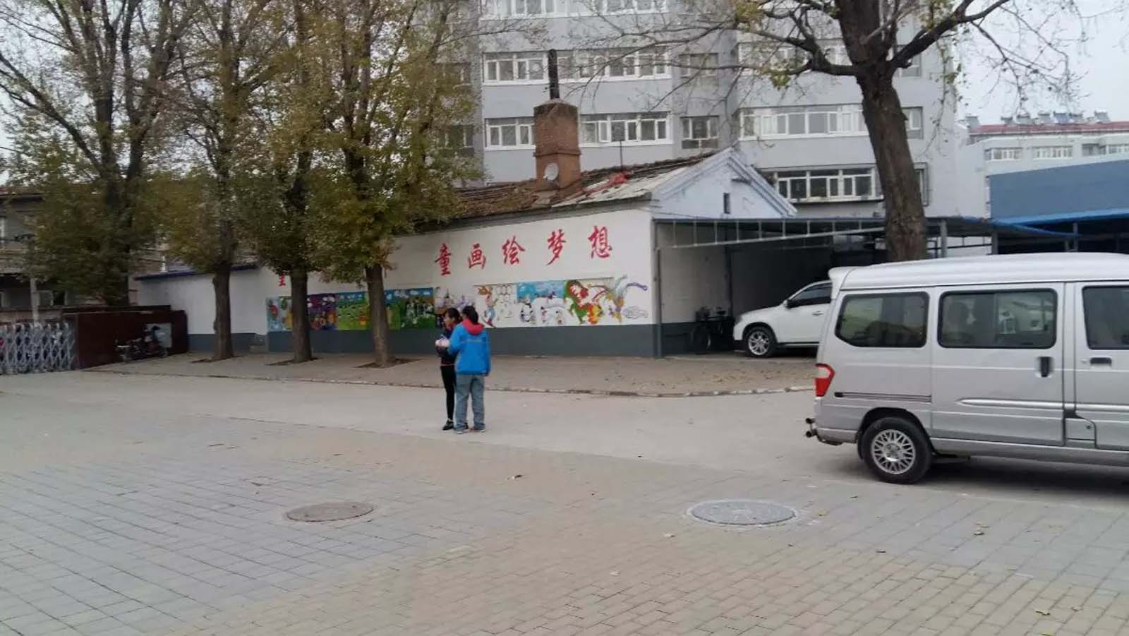 一进大门是几棵威武的杨树,它们枝繁叶茂,就像士兵一样守卫着校园。左边是一面洁白的墙,我们在这面墙上画满了画,用画的形式描绘着我们的梦想。那面墙画用了我们一个月的时间才完成的,每天课余美术老师就带着我们在墙上画。