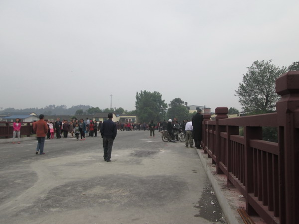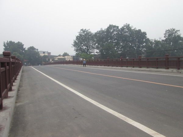 在1986年修建了一座大桥,二十多年了,早已在人们的心里烙下深深的印记。就在2年前,拆除了旧桥,新建了大桥,依然叫——复兴大桥。桥耸立在河的两岸,它虽没有赵州桥雄伟壮丽,但它却挑起了一样重的担子。两侧有石栏,那一根根柱子就像一个个威武的战士在站岗,要是桥栏上有路灯的话就更完美了,那样的话,夜间走在桥上就不那么害怕了。桥的两侧是人行道,桥中间车辆像流水一般川流不息地来来往往。桥给人们带来了极大的方便。我们再也不担心夏季的洪水冲毁桥梁,也不再担心因为洪水我们不敢从上面通过。每天都有一群天真可爱的小朋友从桥上经过,自从有了这座桥,我们上学就方便多了。无论是坐车还是走路上学都很方便了。