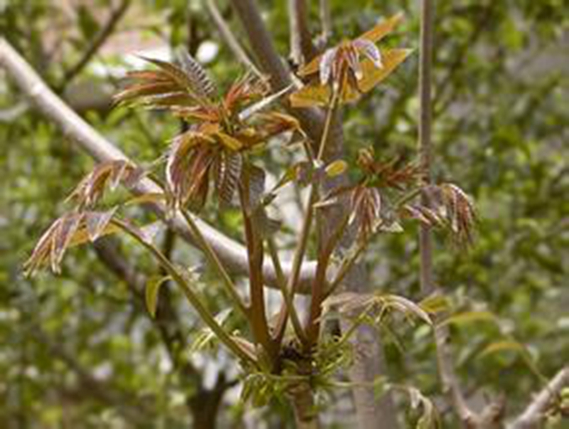 香椿一般在春天食用,春天的香椿树发出的芽,只有大拇指一般粗。而且是光秃秃的,树皮也是裂开的,不过一看树枝的顶端,有许多棕红色,又肥又厚,有小又尖的嫩芽还未完全展开。它的茎就更细了,只有筷子那般粗细,而且很娇嫩,用指甲一掐就断了。香椿生长的也很快,只有在发芽后最近几天才足够新鲜,否则叶就会变老,茎也会变硬。