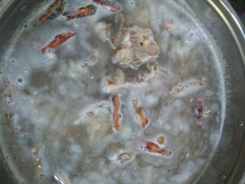 今天是元旦节,中午我们炖排骨杂锅,首先加水、放辣椒、蒜和排骨进去。