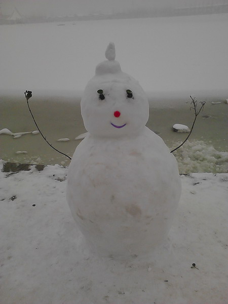 不一会儿,一个可爱的雪人就出世了。