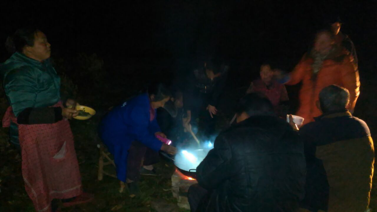摸青绝不只是小孩子的事,大人们也是要参与的。我们带上刀子、提上篮子、背上背篼出去摸的时候,大人们已经在屋外帮我们搭起锅了。 虽然是黑灯瞎火的,但事先侦查过,所以不会费很大的劲。摘青菜、拔萝卜、扯蒜苗……不一会儿就搞定了。 带着战利品回到村子里,大人们都来动手了,洗菜、烧火,不一会儿一大锅菜就弄好了,就像野炊一样,大人、小孩儿围在一起,开开心心地吃了起来。