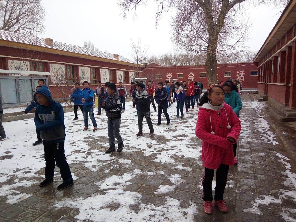 下课了,同学们都出来做课间操。雪虽然停了,但天气还感觉特别冷,真是下雪不冷化雪寒呐!同学们都缩手缩脚的,施展不开呀! 春雪,预示着春天已经来到,不久之后,大地将渐渐复苏,带来一片生机。这是一件多么令人欢庆的事啊!