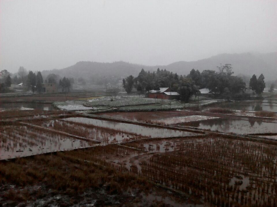 房顶上、树上、菜园里都披上了一层白色的棉被,可谓“上下一片白”。这里的雪不同于北方,北方那厚厚的雪盖住房子,大树,一眼望去,白茫茫一片,没有一丝生气。而我们这里的雪很薄,轻轻盖在菜叶上,可依稀看见菜叶的轮廓与颜色,让雪景多了几分生机与活力。