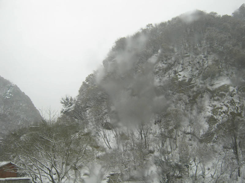山像披上了雪白而蓬松的婚纱,树便是这婚纱的点缀,这些树在纷纷扬扬的大雪中若隐若现,可是显得格外神秘。但对我来说,更为神秘莫测的是那山头,
