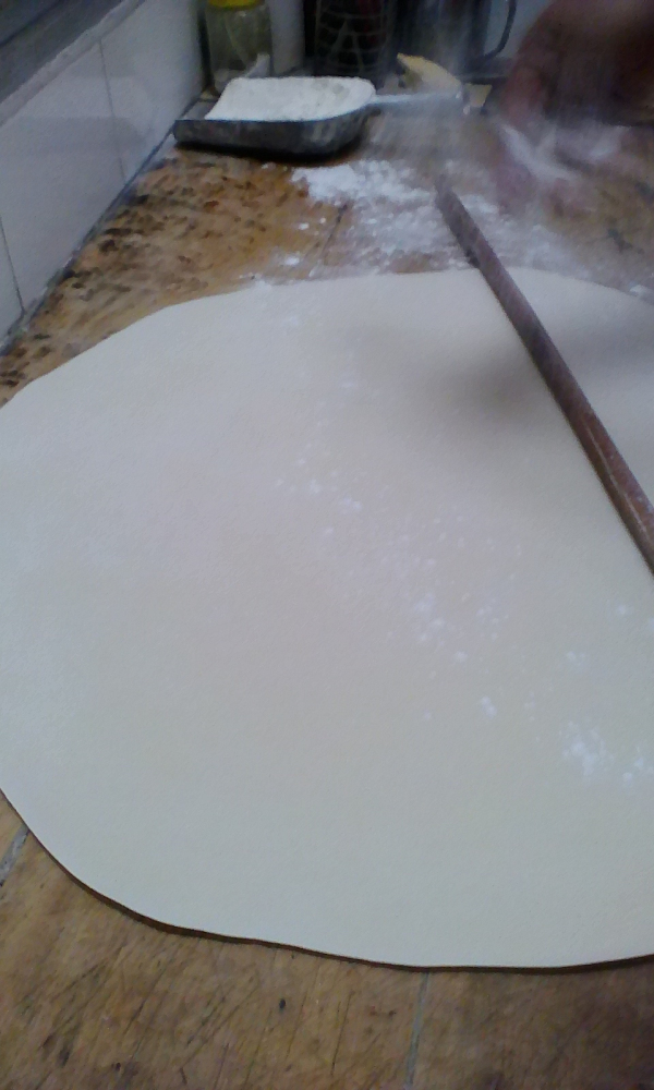 说起奶奶的拿手绝活,那可算得上是擀面皮了,奶奶没用一会的功夫,面就揉好了,奶奶把揉好的面放在案板上,用擀面杖左擀擀右擀擀,不一会,面就像一张大大的圆饼一样了,紧接着奶奶又把面切好,就开始包饺子了。