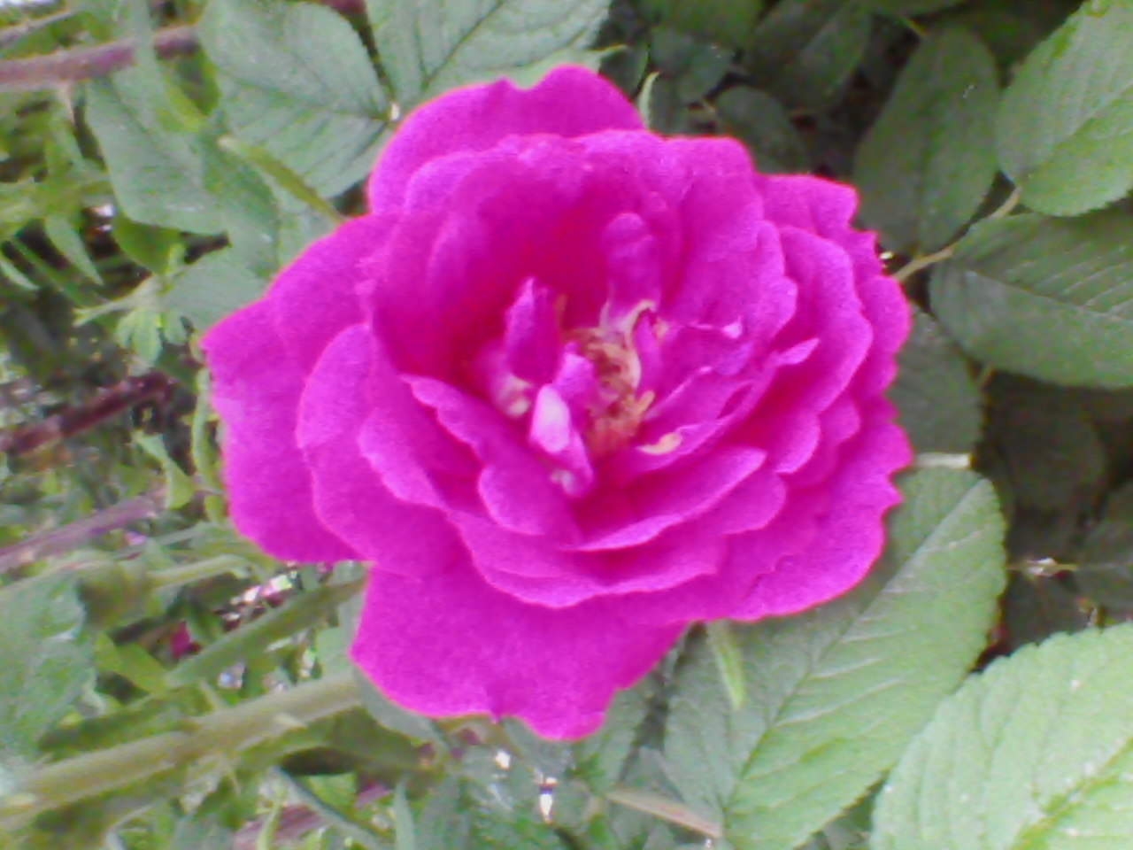 这不是鲜红的太阳吗?它便是那太阳花。它的颜色红得发紫,紫中带红。给人以旗帜鲜明,催人奋进感觉。它的花瓣向外辐射,急需象征着它可以包容万物。是啊,做人也需要容人的肚量,宽广的胸怀,不是吗?