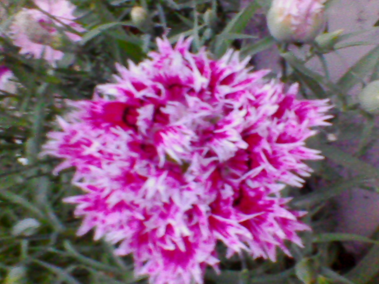 这便是那可爱的石竹,开得甚是旺盛。轮齿状的花瓣,向四周辐射。它白里微透着白色,像个娇羞欲滴的姑娘,使人产生怜悯的感觉。花中也有颜如玉,赏花可以使人忘记烦恼,赏心悦目,调节情绪,缓解疲劳。是学习过程中不可或缺的一项高尚活动!