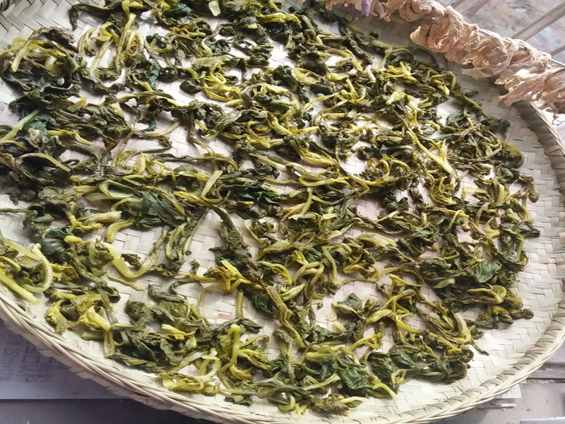 拿一个筛子来把酸菜到在上面,把它晒干。像在外打工的人没有时间就可以把酸菜拿出来煮汤后这其他东西。