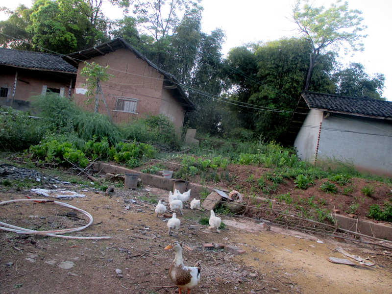 我把小鸡追的四面八方到处都是,我费了九牛二虎之力,才捉了一、两个。给我累得都快断气了。