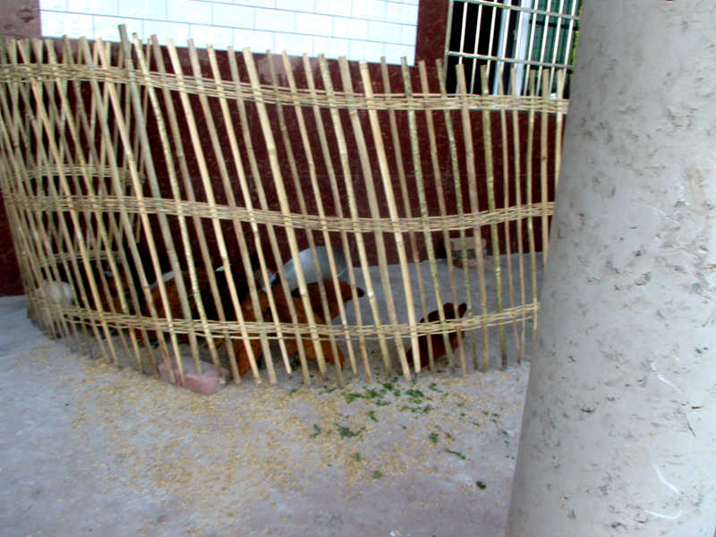 我拿起一根长棒,向菜地走去。我左一下右一下,控制住整个小鸡队伍,凡是有不听话想脱离队形的我都毫不客气地用长棒把它赶回来。终于,皇天不负有心人,小鸡全部进了围栏了。