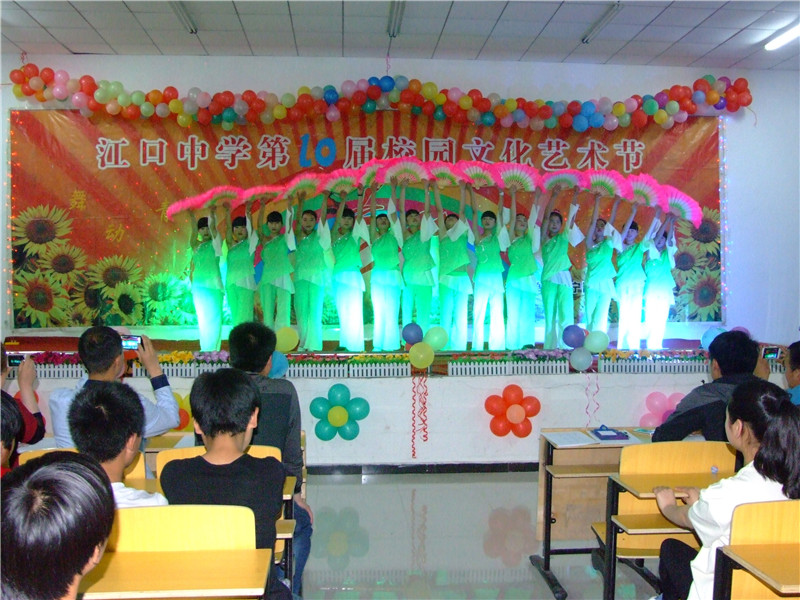 5月8日,我校举行了一次文艺汇演。这次文艺汇演非常成功,同时也是对大家文化艺术水平的一次大检阅,展示了江口中学文化特色和学生的个性特长,丰富了校园文化生活。丰富多彩、形式多样的文艺节目使我们放松了大脑,放飞了心情,愉悦了身心,同时也让我们受到了一次很好的艺术教育和美的熏陶。