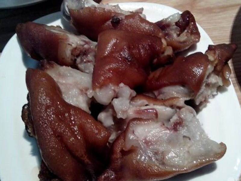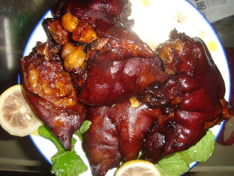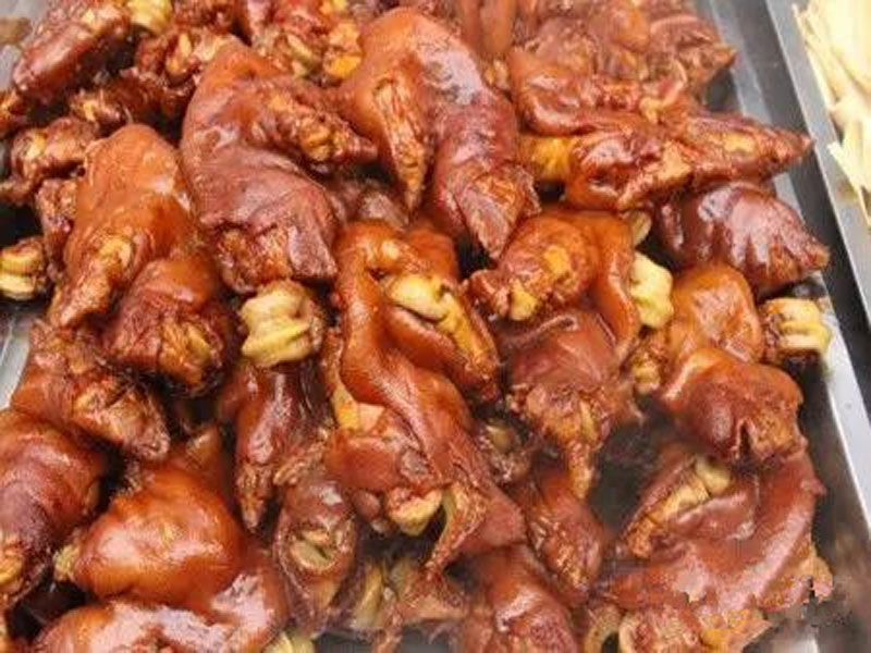 下一步,把卤好的猪蹄放在大盘里,看一下它的颜色或者入味了没有,需不需要再回锅一下。