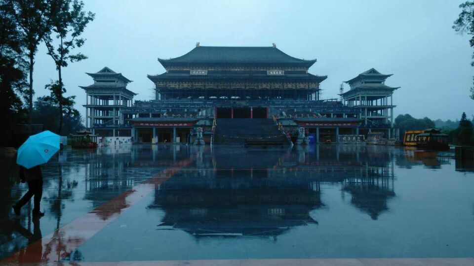 继续往里走,来到了石象寺,这里正在建全亚洲最大的单体寺庙,这个庙是石象湖最高的建筑,虽然还没有完工,但它宏伟的气势已经显现出来了。在建筑工地,我看见了地上还摆着一块匾没有挂上去,我比划了一下,大约有3米,真大! 再往里面走,更大的花圃出现在我们眼前,主要种植的郁金香,只可惜还没有开。 穿过花圃,本来我们是想去湖中乘船的,因为下着小雨,湖面上很冷,所以我们就没去了。