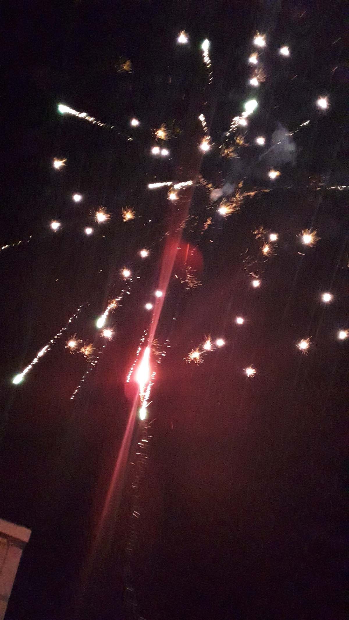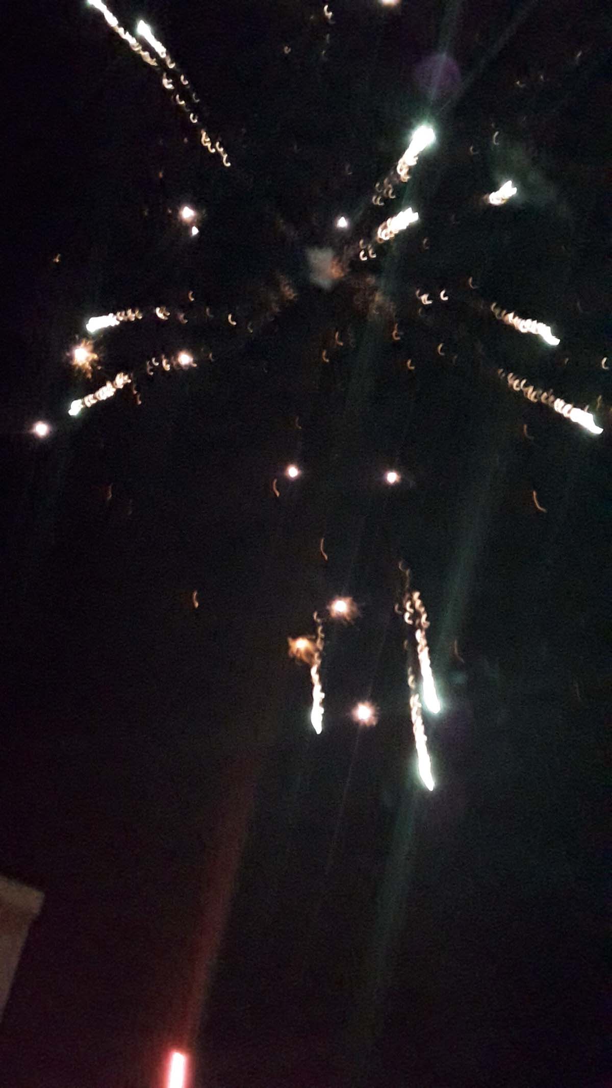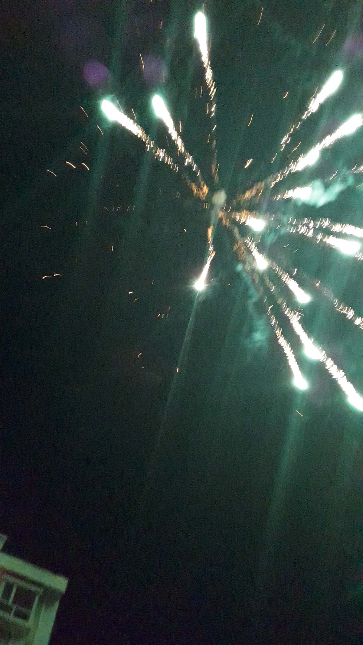 胆小归胆小,可我就是喜欢欣赏烟花的美丽。烟花在天空绽放的那一刻,把漆黑的夜空都扮亮了,五彩缤纷,造型也特别美。有的呈花瓣状散落,有的呈线型往上窜,有的炸开一个钻石状,千姿百态,好看极了。