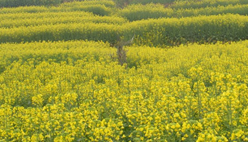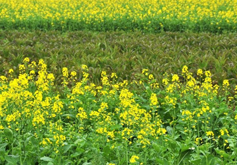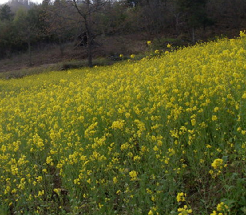 在我的家乡,沿着一条石板铺成的小路,穿过一座山,就看到了一大片的油菜花。