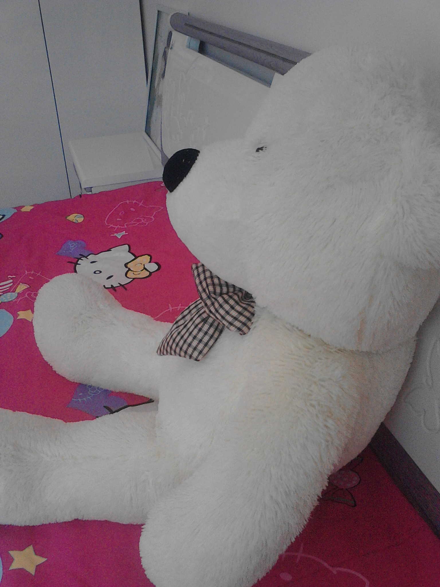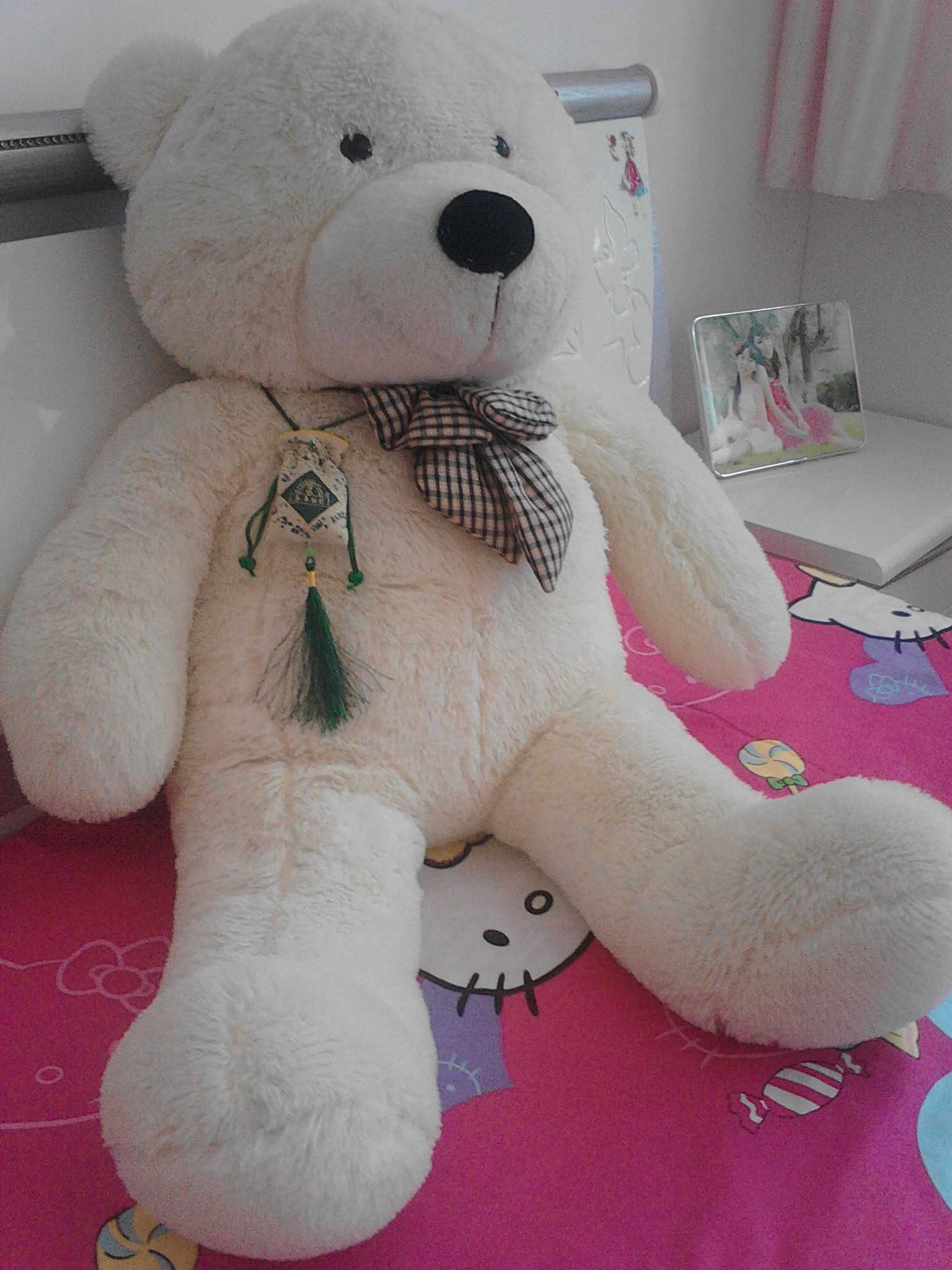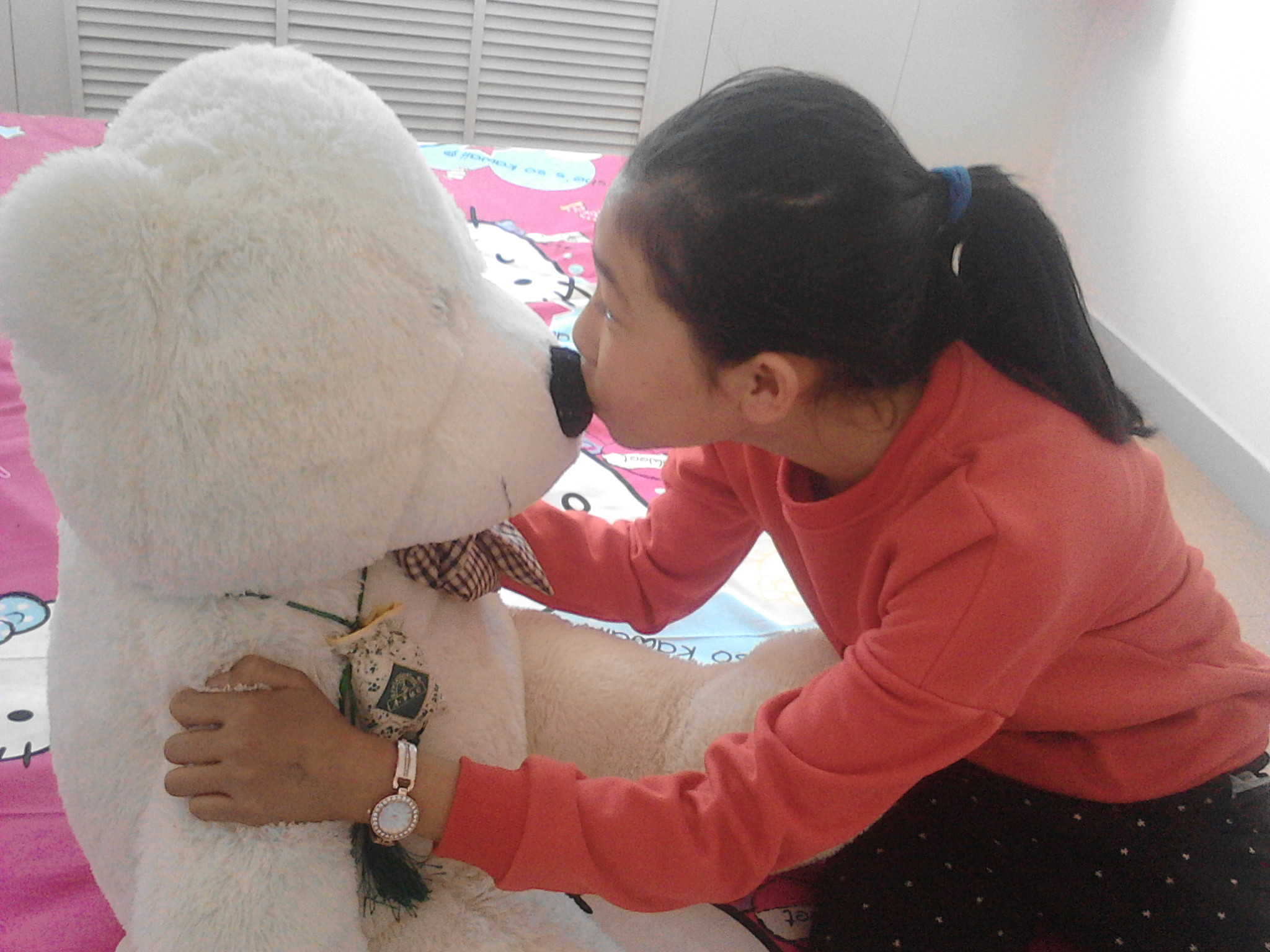 记得小时候,我去同学家去玩儿,她就有一个大娃娃,那个娃娃和我现在这个一模一样。她太小气了,就自己玩儿,摸都不让我摸一下。那个大娃娃太有诱惑力了,我羡慕极了。那个娃娃挺贵的,妈妈看到了就拼命出去打工,想为我买下。我知道后,就跟妈妈说:“我不要娃娃了,你别去打工了。”可妈妈不听,妈妈依旧去打工,终于有一天,妈妈抱着一个我梦寐以求的大娃娃站在了我的面前。