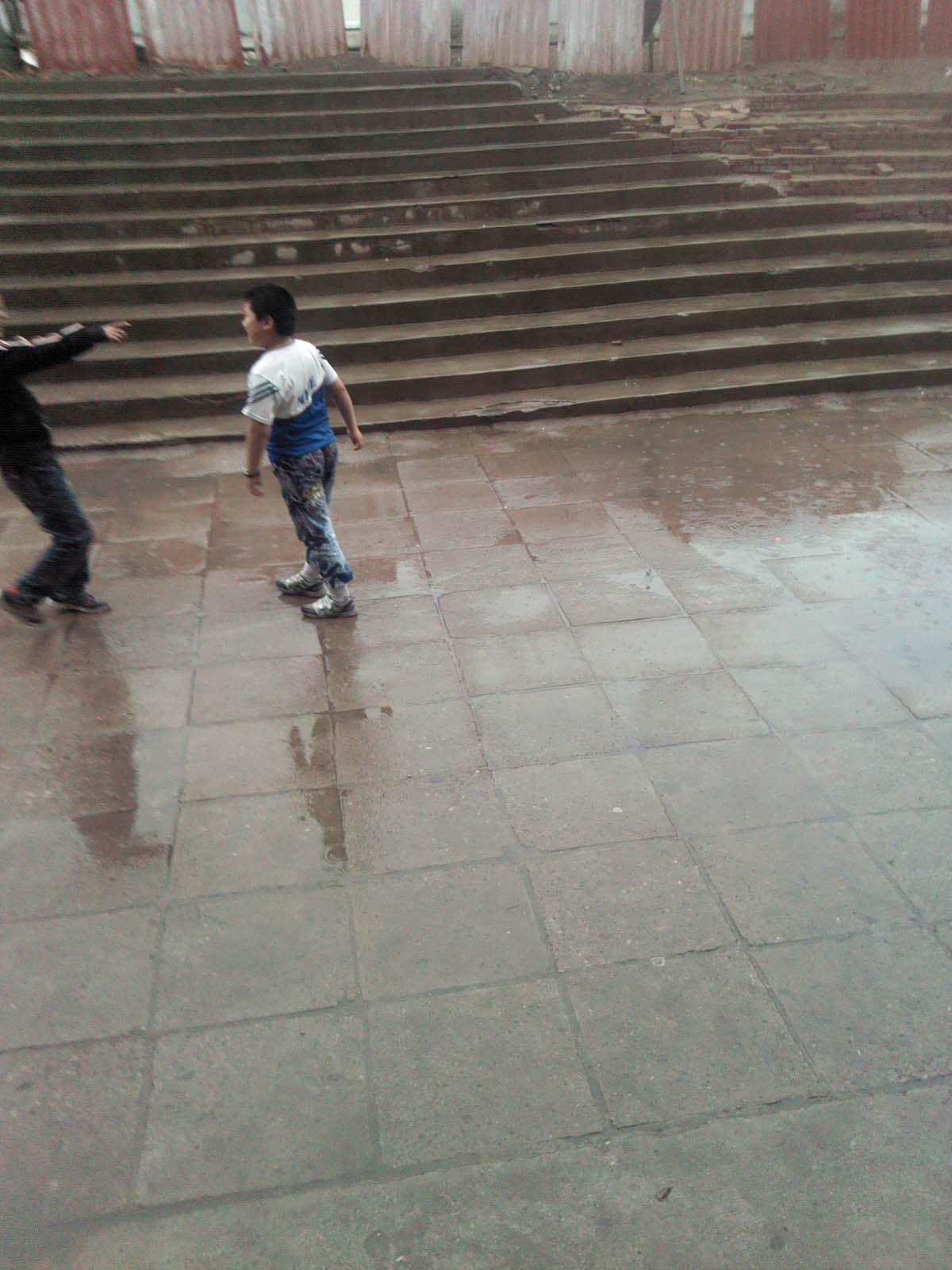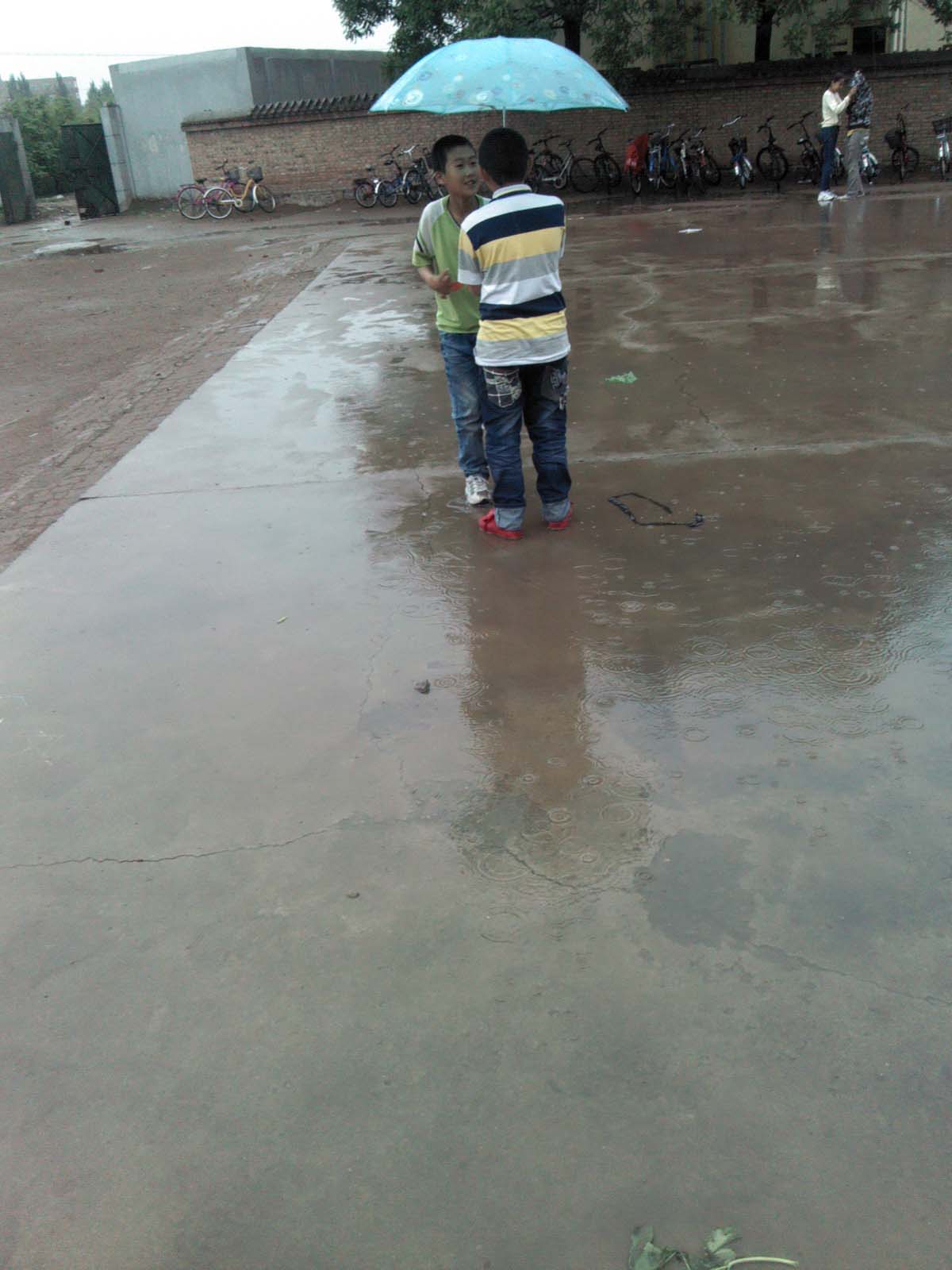 在雨里玩儿,我们很快乐。