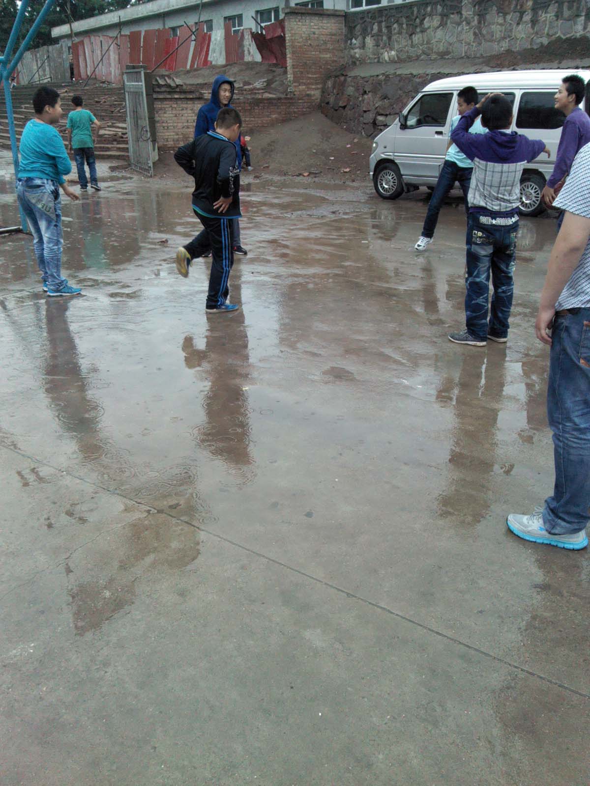 下雨了,是入夏以来第一场雨,雨不是很大,地上湿漉漉的,没有了往日的干燥,也没有了昔日的风吹灰尘起。空气也湿润了许多,还能闻到淡淡的泥土的香气。气温不冷也不热,在这优美的环境里,怎么能少了我们的身影。