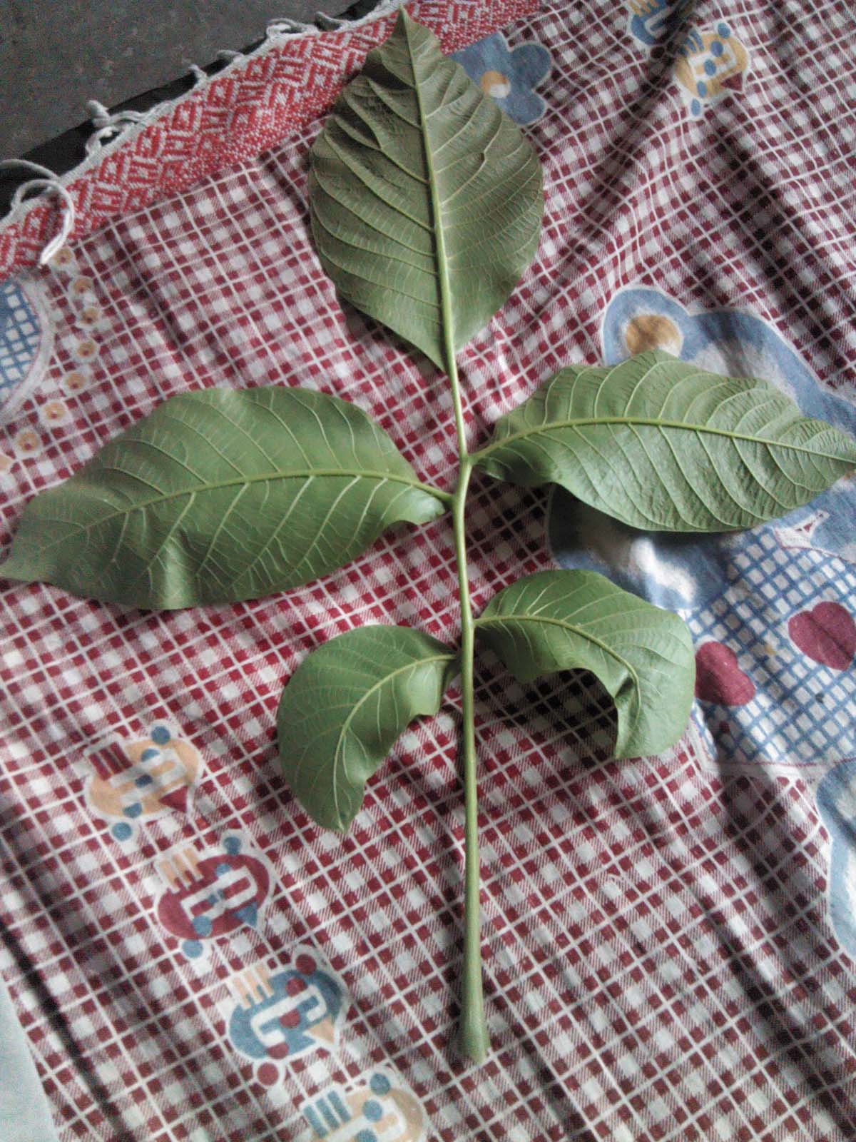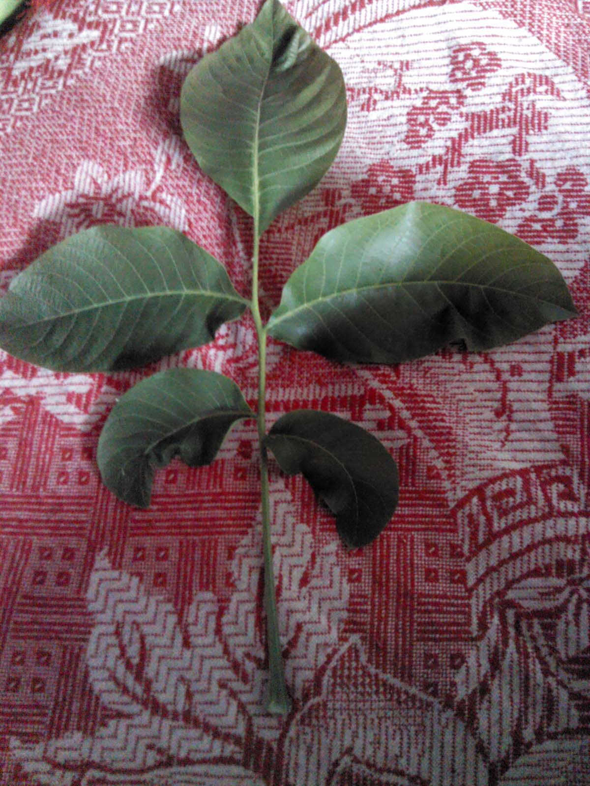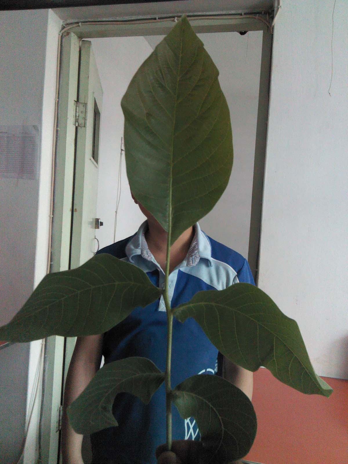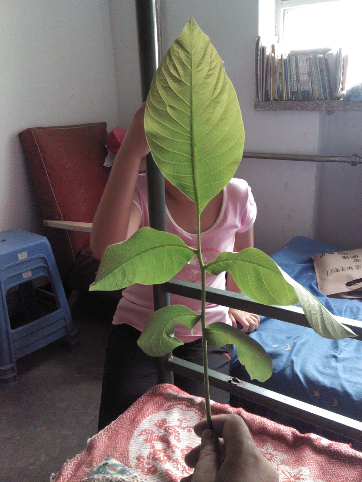 有一个成语叫一叶障目,说的是一个拿着一个树叶就以为别人看不见他。今天我就用一叶障人了,你看我折了一条树枝,样子挺好看的。上面一个大叶子,下面四个小叶子,还是对称的,样子规整挺好看。