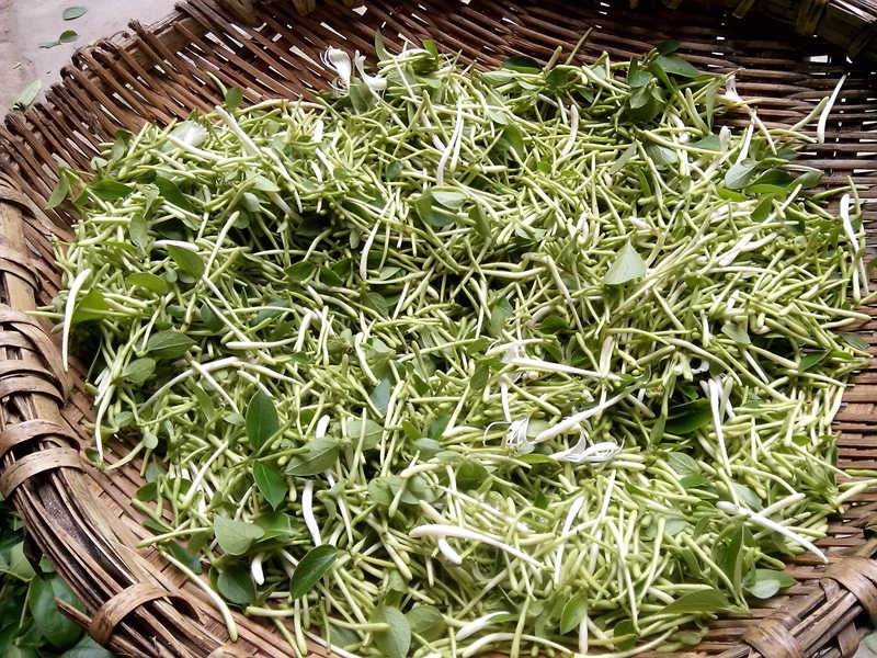 我家的这株金银花枝叶长得特别茂密,花朵也特别的多。外婆还特别为它搭建了架子。每年摘花的任务就落在了我的肩上,像以往一样我找出裝花的竹篮。我摘得很小心,尽量只摘花朵不带叶子,有时也会有少许的叶子连同花朵被摘下来。
