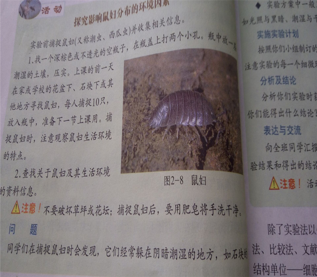 "啊,不是吧?"大家七嘴八舌地议论着。生物课上,老师要我们做实验,而做实验的材料就是鼠妇,老师要我们每个人抓三只鼠妇来。什么是鼠妇?也就是一种小虫子,也叫潮虫、西瓜虫,生物书上有图,我一看:哇,真恶心啊,长得圆滚滚、胖乎乎的,身体晶莹剔透,看过去一捏就要爆了似的。我生来就很怕昆虫,连蝴蝶、蜻蜓我也不喜欢。更何况现在还要我抓这么恶心的鼠妇?一想到这,我就想吐。怎么办呢?那就不抓了,管他的。不行不行,我可不敢不抓,等下被老师批评。唉,只好试一试了。
