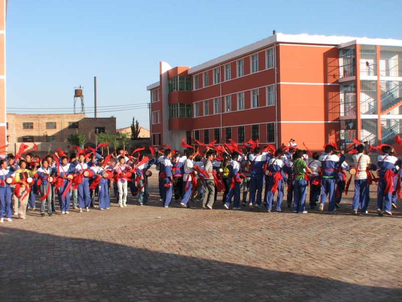 真正到了表演的时刻,2008年9月6日这一天,是母校五十周年校庆,腰鼓表演是一项很重要的内容,代表着盐池二中的精神风貌,我们早早换好了统一的服装(白色丝绸类的,并且每人头上戴一小无顶帽),大家精神焕发,都是这一次表演做着最后的努力,因为毕竟之前已经苦练了二十多天了。