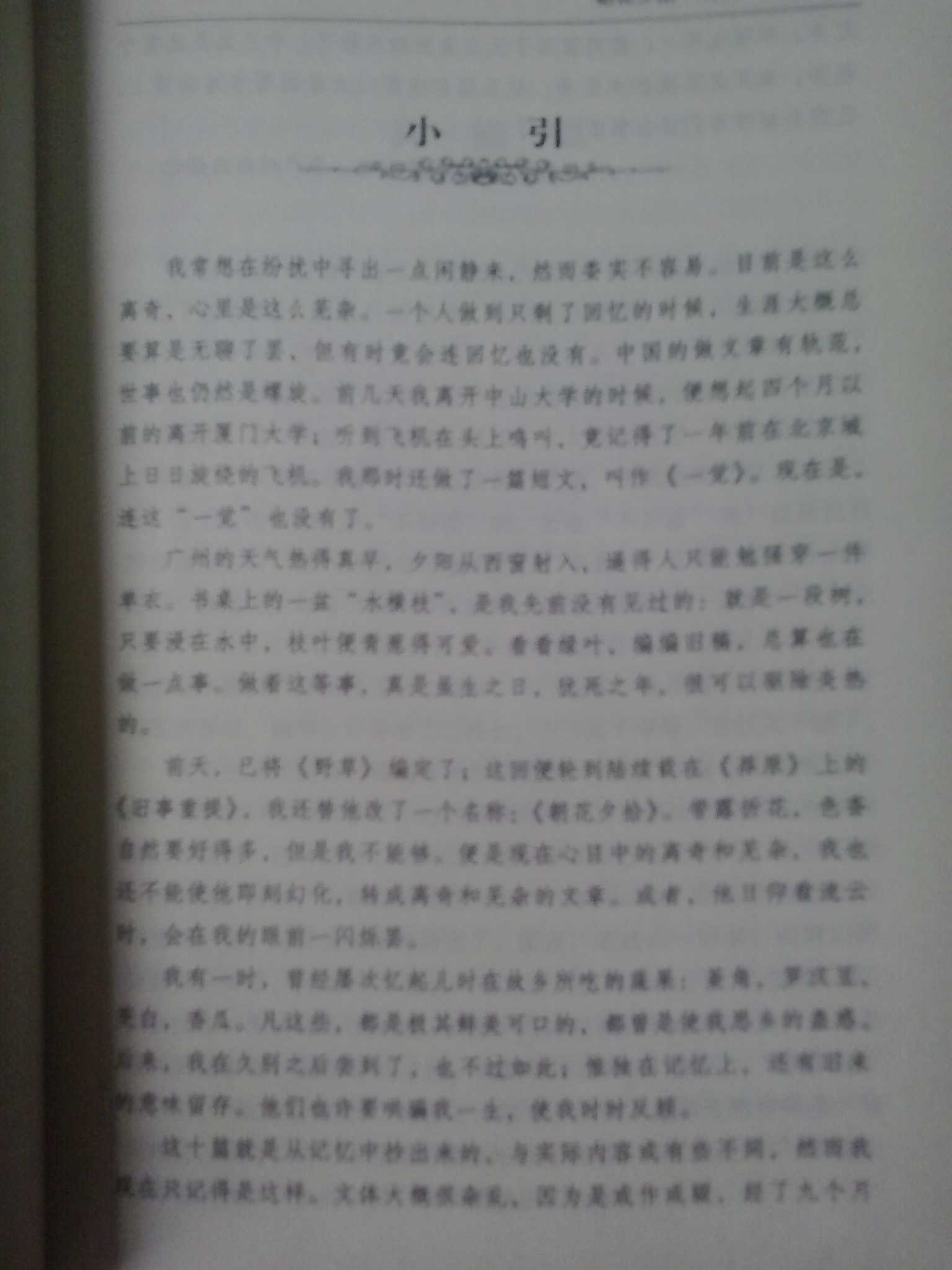 早晨坠落的花下午捡拾了起来,意味着回忆以前的点点滴滴的生活与情感。鲁迅用它来命名自己的散文集意思是在他晚年的时候回忆他的童年故事。这本书是鲁迅1926年所作回忆散文的结集,共十篇。前五篇写于北京,后五篇写于厦门。最初以《旧事重提》为总题目陆续发表于《莽原》半月刊上。 这本书向我们描绘了清末民初的生活图卷,封建的社会制度,社会对人民的囚禁。