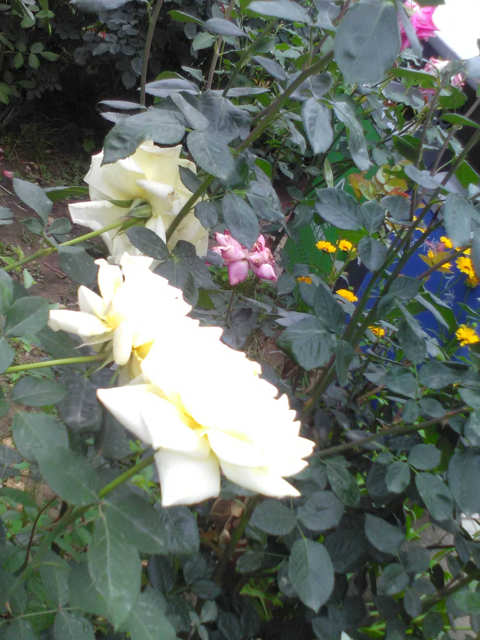 月季也毫不示弱。月季花的茎又细又长,墨绿色的茎上长满了许多暗红的小刺。花叶是手掌形的,翠色欲滴,叶缘带着一排小齿轮。花瓣微微下卷,层层叠叠。在艳阳的照耀下,花瓣犹如涂上了一层明油,光泽而油亮,一株株月季昂首挺胸,好似打了胜仗的将军。它们享受着阳光的沐浴,花瓣中间金黄色的花蕊的顶端粘着花粉,散发出浓郁的芳香,招来了一群群蝴蝶在花丛中嬉戏,蜜蜂在花丛中辛勤地采蜜,"嗡嗡"的叫着。当你劳累了一天疲惫不堪时,嗅一嗅花香,沁人心脾,乏意、疲惫顿时全消,精力充沛。一阵微风拂过,月季花在风中摇曳,那婆娑倩影,宛如一位妙龄少女正在翩翩起舞。