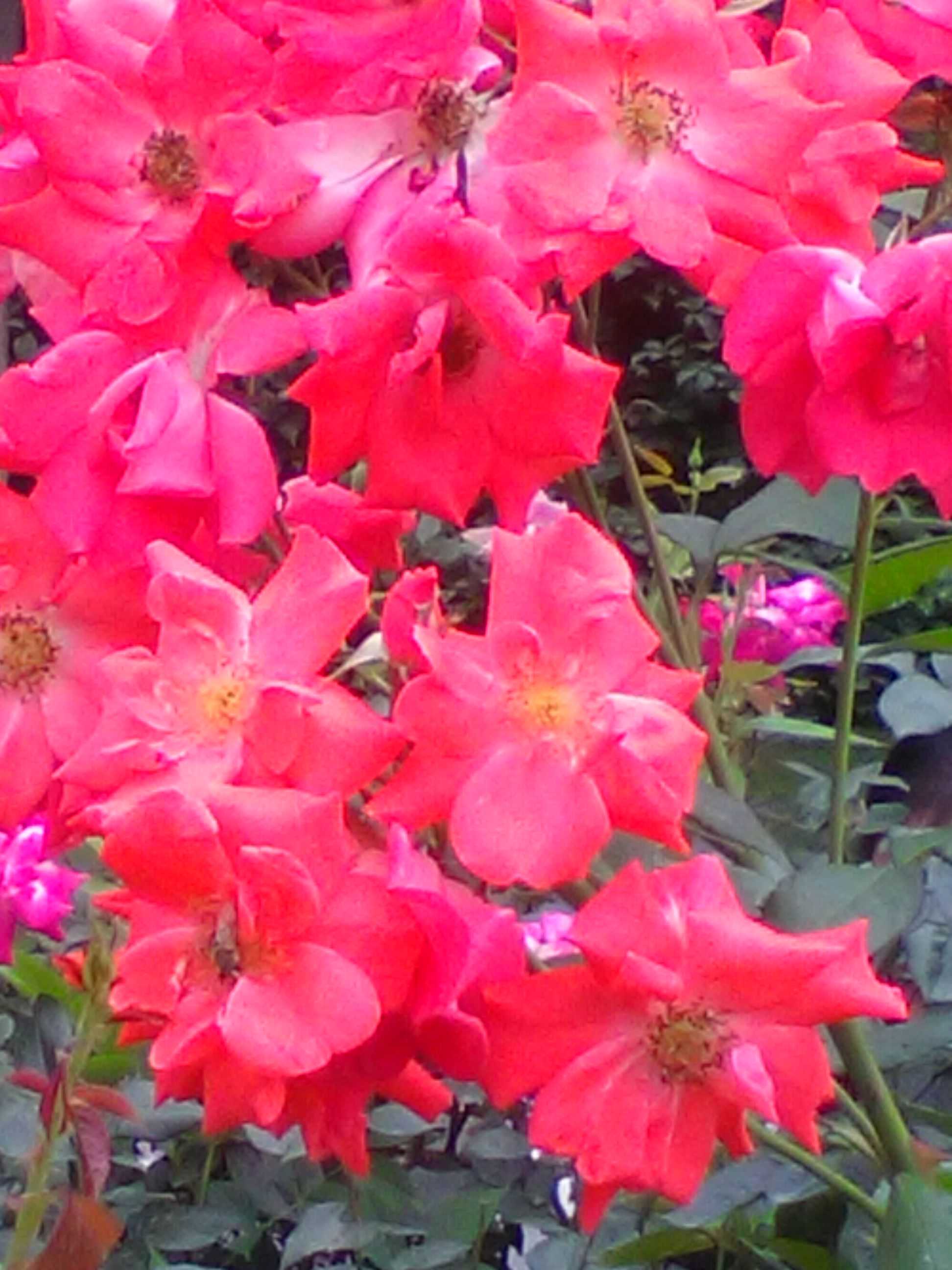 花园里的花多得数都数不过来,我看得眼花缭乱,那香气扑鼻的花儿正在微风中摇曳……花儿们你争我抢,都想展现自己的风采。这百花争艳的景色真是壮观啊!