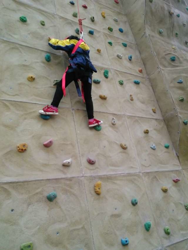 来到这里连口水都没有来得及喝。军训、厨艺展示、攀岩等一系列活动紧张有序地开展。"一!二!三!四!"军训开始了,过来过去走了一遍,喊了几遍"一二三四"就结束了,这项活动在这次实践活动中,算是比较无趣的。很快,军训就结束了。紧接着,"厨艺展示"这一活动开始了。大家一蜂窝地涌进厨房,切菜、生火、洗菜、做饭,厨房里烟雾缭绕,油烟呛得人直咳嗽,但乒乒乓乓的锅铲声中,夹杂着的欢声笑语却久久不散,过了很长时间的忙碌之后,热腾腾的采上桌了。无论做的好不好吃,但是每一道菜都是大家劳动所得的果实,大家都努力"光盘"了。重头戏终于上场了:攀岩。简单的准备工作做好后,我小心翼翼地踩上第一个石块,第二个,第三个……我慢慢地前进,快爬到一半时,脚不由自主地抖动起来,怎么都控制不住。"半途而废?那是坚决不可以的。"于是,我咬咬牙,谨慎地迈着剩下的每一步。快到了,就在一块凸起的地方,腿抖得更厉害了,稍不留神,脚一滑,失败了!我懊悔的落到地上,差一点就成功了!可惜,那一点是多么的遥远啊!其他同学一个接一个的成功了,这使我心中的遗憾更加强烈了。