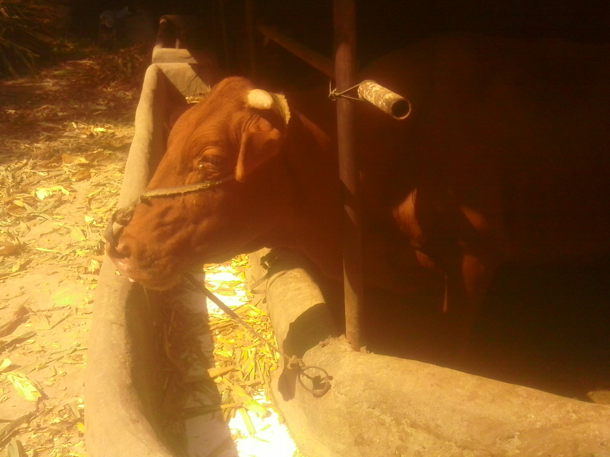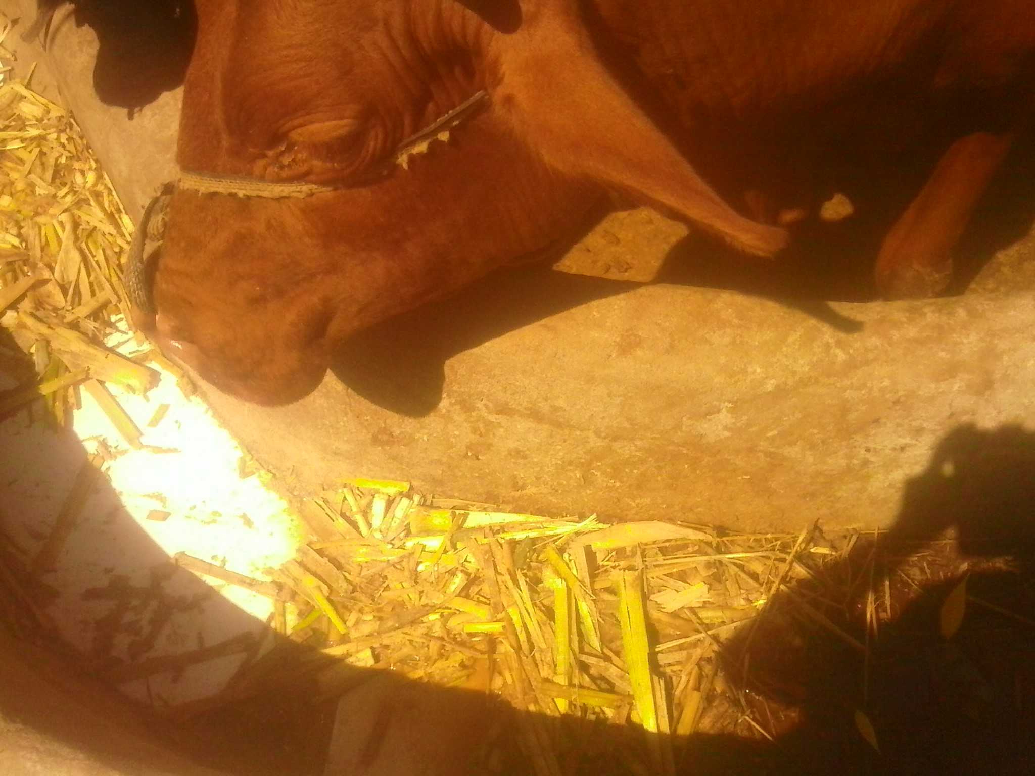 "杨贵妃"可能在大家眼里都很温柔,可我家的"杨贵妃"呢,非但不温柔还很粗鲁,特别是它那个吃草的速度,你不看不知道一看吓你一大跳,就它那吃草的速度简直都能打破世界吉尼斯纪了,唉,这下可把我害惨了,你们只道吗?我刚给了它草,转身去给别的牛给草的时候,它就把我给的草一扫而光,然后就牟牟的叫,叫的我心烦意乱,没办法我就只能撇下别的牛来伺候它了,有时候它把草吃完了就大声叫,我偏不管它,我就装没听见,它一看这招行不通,这下旁边的牛就要遭殃了。我可真是彻彻底底的服它了。听,它又在叫了。