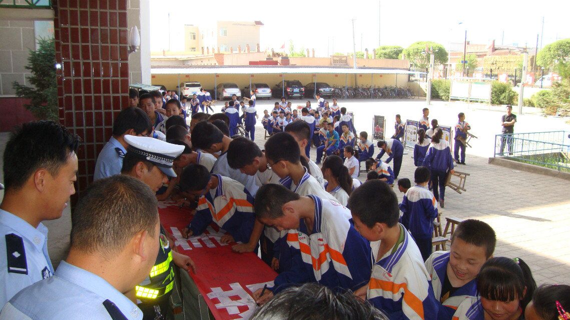 在承诺签名时,同学们神情严肃,一丝不苟。因为大家都知道,我们每个人安宁幸福的生活都离不开周围那些为我们默默奉献的人,比如我们的父母、老师、警察叔叔。我们应该珍惜安定的生活,做好一些力所能及的事情。