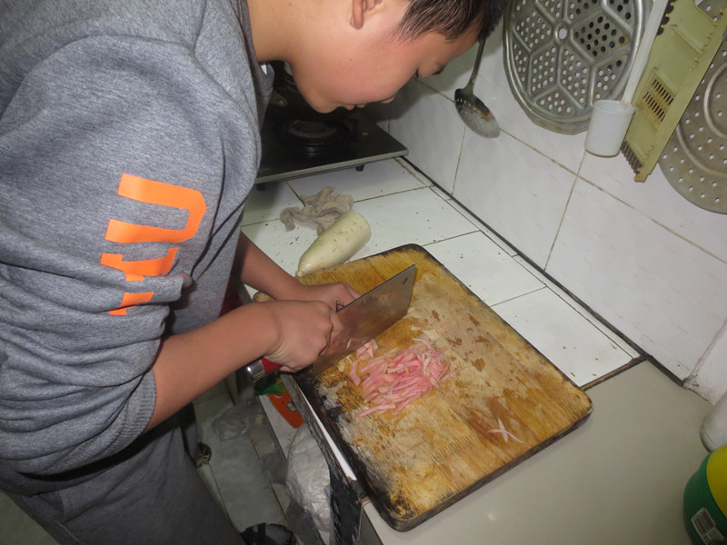 原料可以用各种蔬菜,如白菜、萝卜、辣椒等均可作为制作泡菜的原料,首先我在自家的园子里挖了几窝,回到家中,把白罗卜洗一遍,平时我最不喜欢和菜接触,不过为了吃到泡菜,豁出去了!我找起泥巴来,终于找到一处,赶紧把它"洗白"啰!就这样一点一点,不知洗了多久。终于洗涮涮攻克了这一堆白罗卜。接着我们还要再洗一遍。妈妈对我说:"要把白萝卜的"污点"都去掉,只留下白色的肉体。"