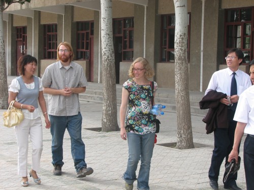 外教在我校教师和领导的陪同下,参观了我们学校,他们边参观边和我校领导交流,有英语老师做翻译,时而评价这儿评价那儿,总是面带微笑,好像这次到我们学校来,他们也收获不少呢。