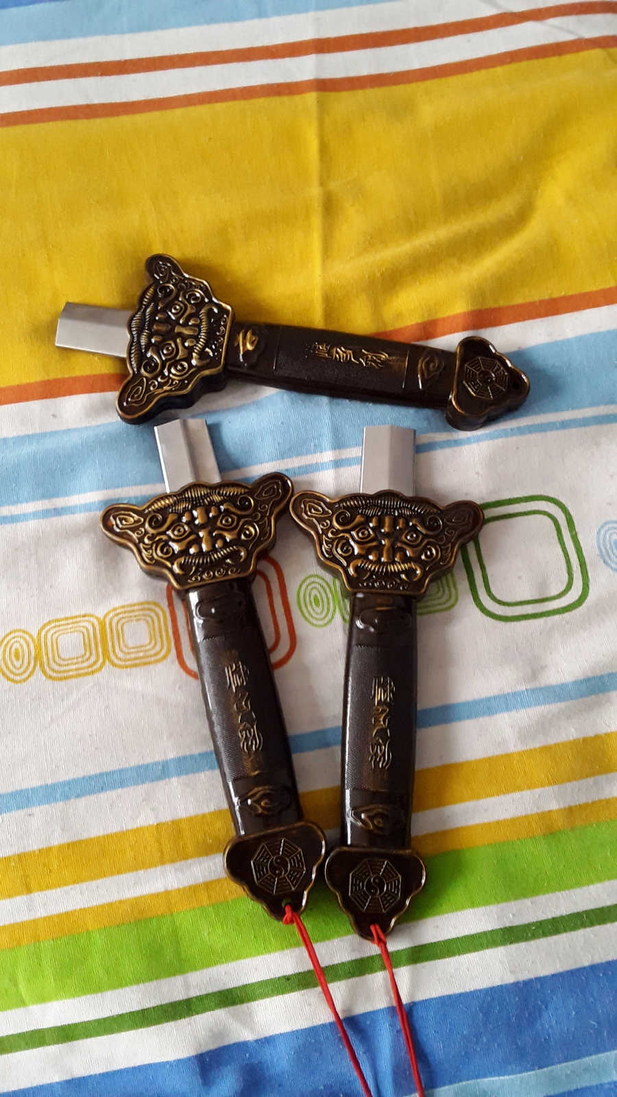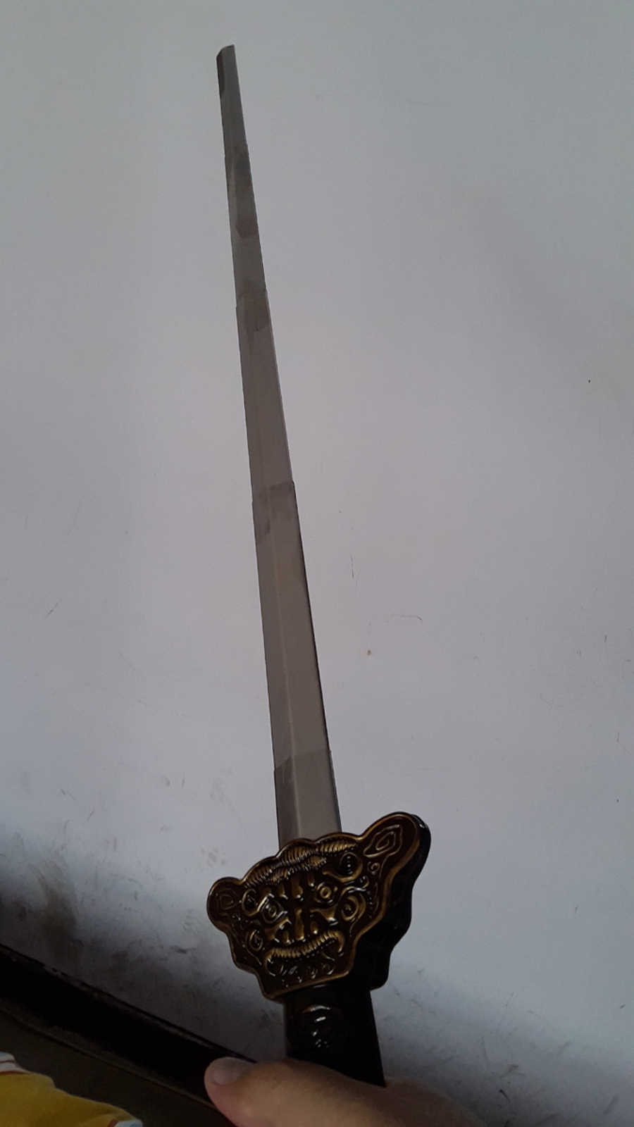 这些天,我发现有的同学手里也有拿宝剑的。好奇的我只要看到,就要追上去看个究竟。那可不是真的宝剑,第一没有开刃,第二还能伸缩。剑可长可短,是一截一截套在一起的,想长就拉出来,想短就按进去。方便携带。