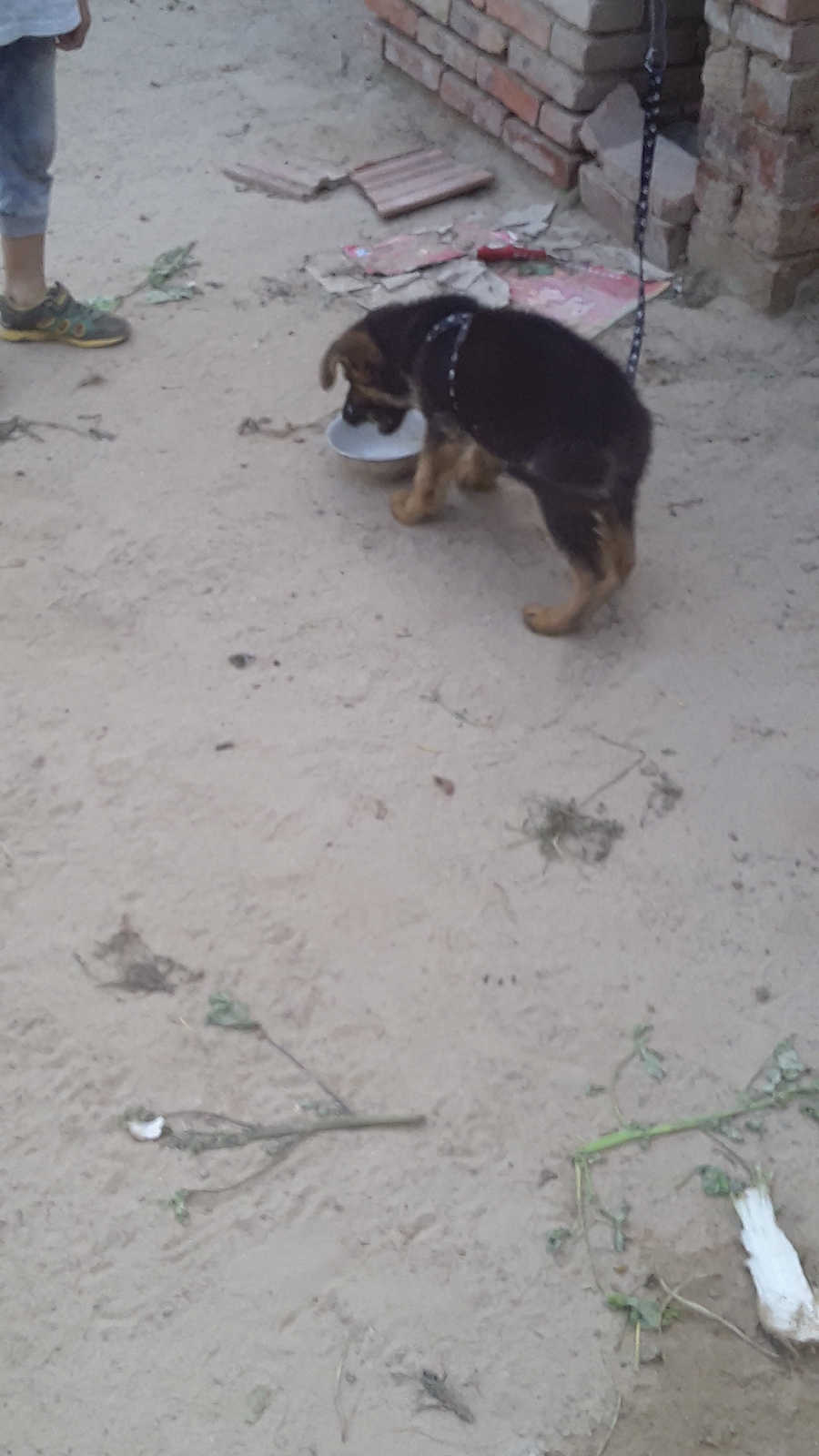 丢丢来的时候可精神了,亮亮的毛,虎墩墩的脚,两只耳朵直立着。用威风两个字形容它一点儿也不过分。姨夫走时还留下了很多狗粮,丢丢就吃那个,别的很少吃。姨夫在的时候也喂它肉。