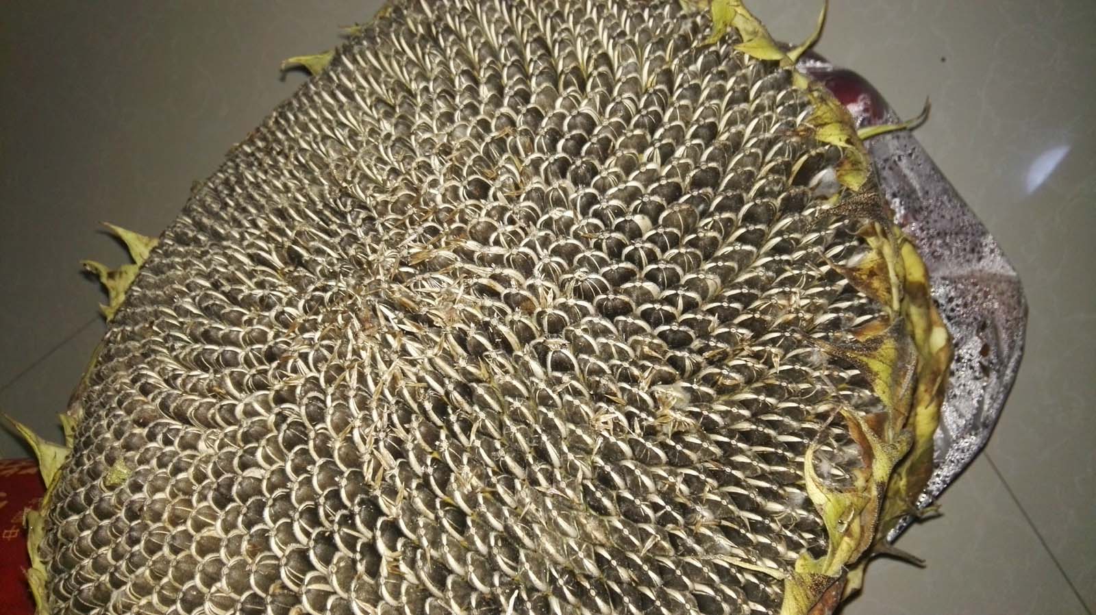 怎么安放瓜籽皮呢?我想了个好办法,嗑完瓜籽皮一般底部都还连着,再合起来扎在葵花饼上不是很好的办法吗?这回吃瓜籽可不愁瓜籽皮了,因为每个皮都稳稳地又回到了葵花饼上。