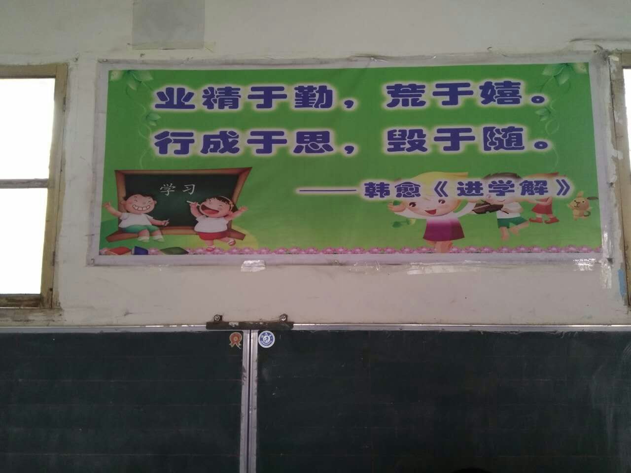 教室的西墙上挂着唐宋八大家之一韩愈的《进学解》:业精于勤,荒于嬉;行成于思,毁于随。时刻提醒着我们不可荒废学业,学习如逆水行舟,不进则退。