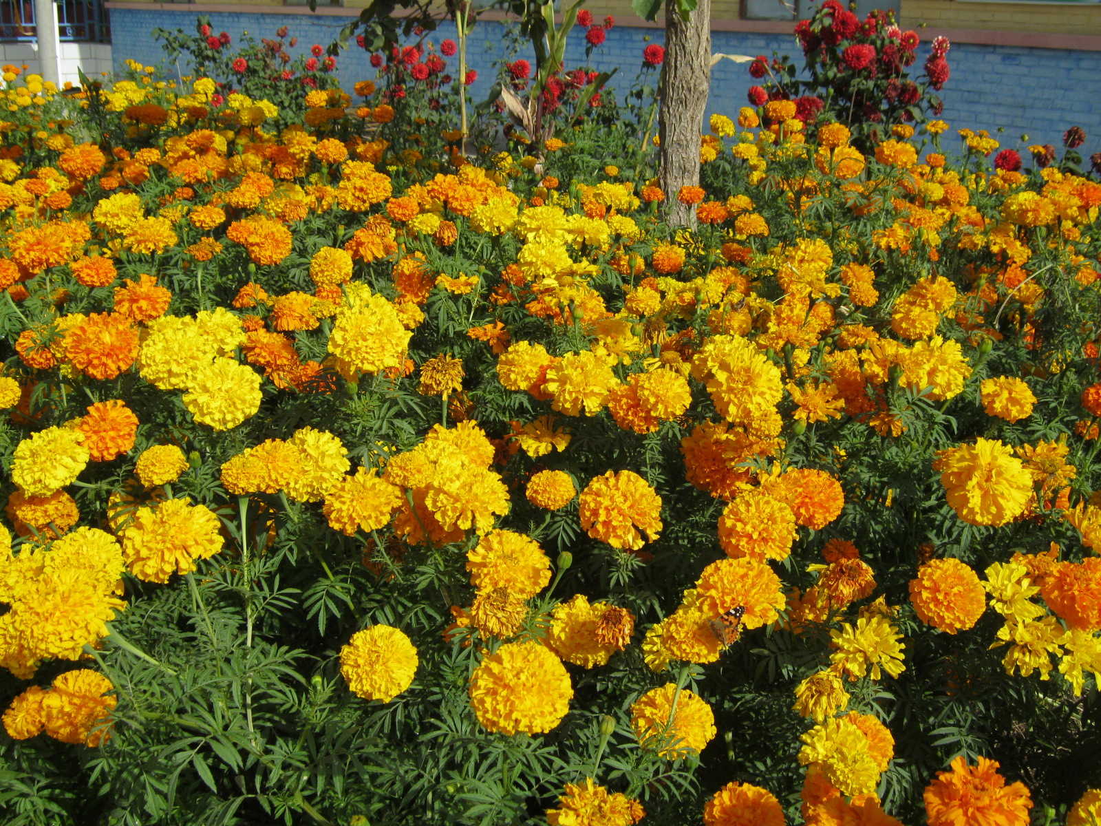 还没入冬,大雪就下来了,菊花它不畏严寒,依然娇艳地开着。雪还没有完全融化,黄白相间,像个汉堡,上面抹了一层乳白色的奶油,让人不由得想吃一口。 黄色的菊花,黄色的世界!