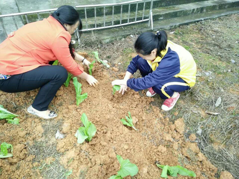 正午时分,我们来到菜地,这里不算太大,但我们想种好这些青菜,还要花不少功夫。 安老师给我拿来一个小铁锹。她先给我做了一个示范:先在土里挖一个小小的坑不深也不浅,要刚好容得下青菜的根。然后把青菜苗的根放进土里,把土盖上。最后,把土压实,让青菜稳稳地扎根在土里。我看了,心中窃喜:种菜原来那么简单。我还以为多难嘞,到时候我一定种的最多、最稳。 可现实往往是残酷的,种菜并没有我想象的那么简单。我把一棵青菜放在土里,用土盖上时,这些土总是不听话,怎么盖,怎么压也无济于事。