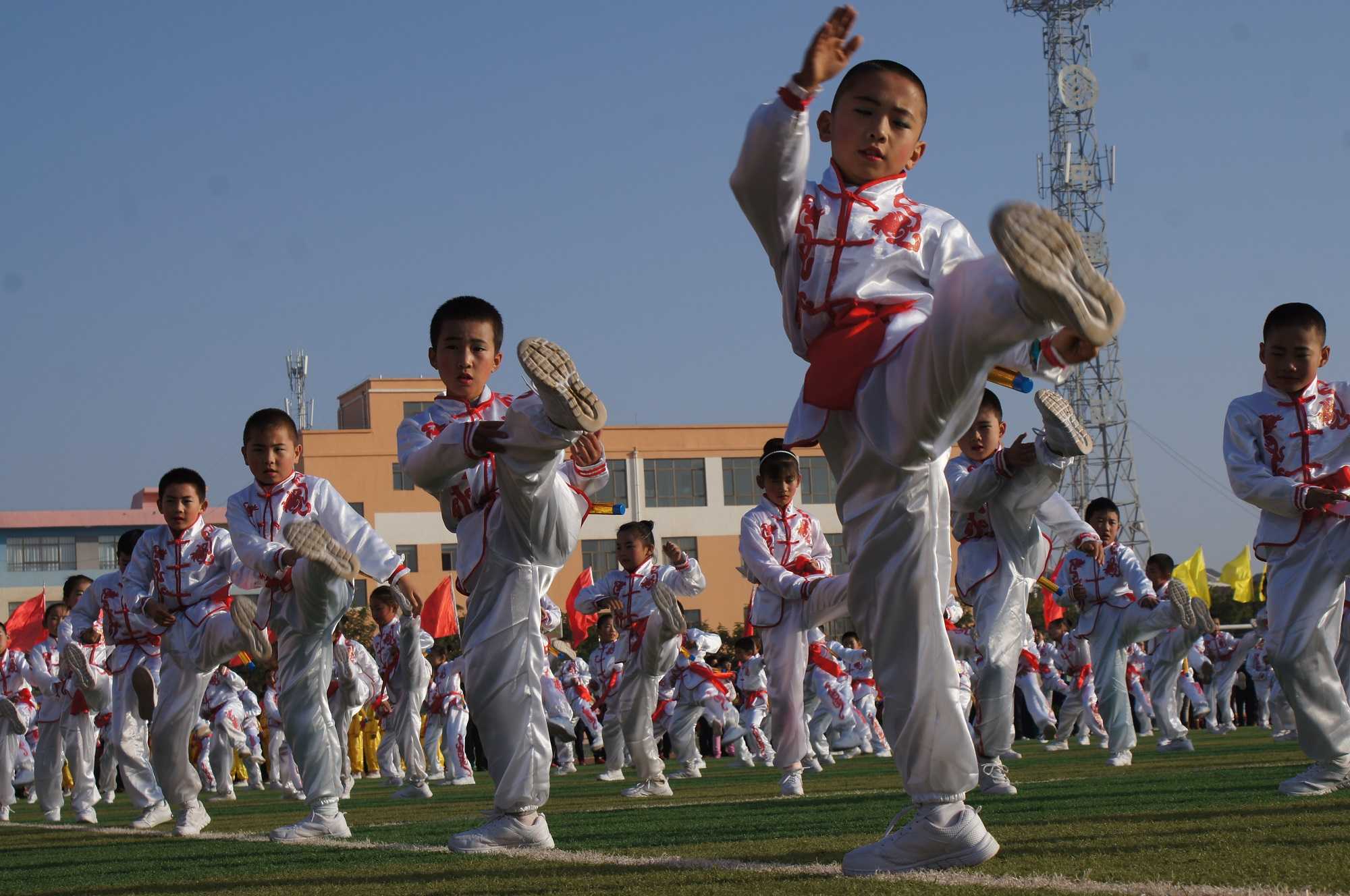 参加运动会的每个学校都给大家准备了精彩的节目,现在就是大展身手的时间了。表演的节目有舞蹈、武术、韵律操等,会场的气氛十分热烈。看吧,这就是我们学校的代表队,这些表演的同学聚精会神、全神贯注,动作干净利落,极富表演力,他们的精彩表演博得了一阵阵热烈的掌声。