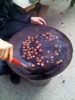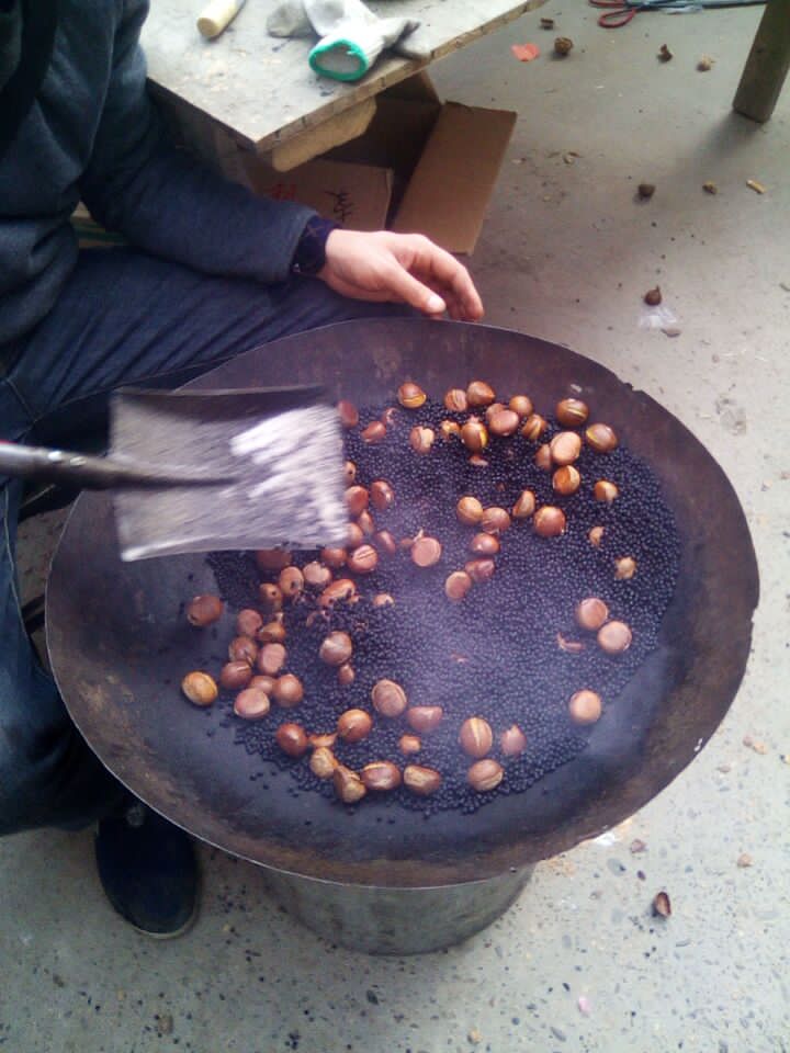 糖炒栗子,顾名思义,就是将所谓的栗子加入一些糖进行高温翻炒。不过这里可有一些小秘密哦。比如说,这糖可不是普通的糖,而是一种类似于黑豆的特殊糖,用它炒出来的的栗子又香又甜,好不爽口。再比如说,炒栗子所用的锅也必须是大铁锅,且需要用铲子不停的翻炒。经过如此几道工序,我们的美味栗子就新鲜出炉了!