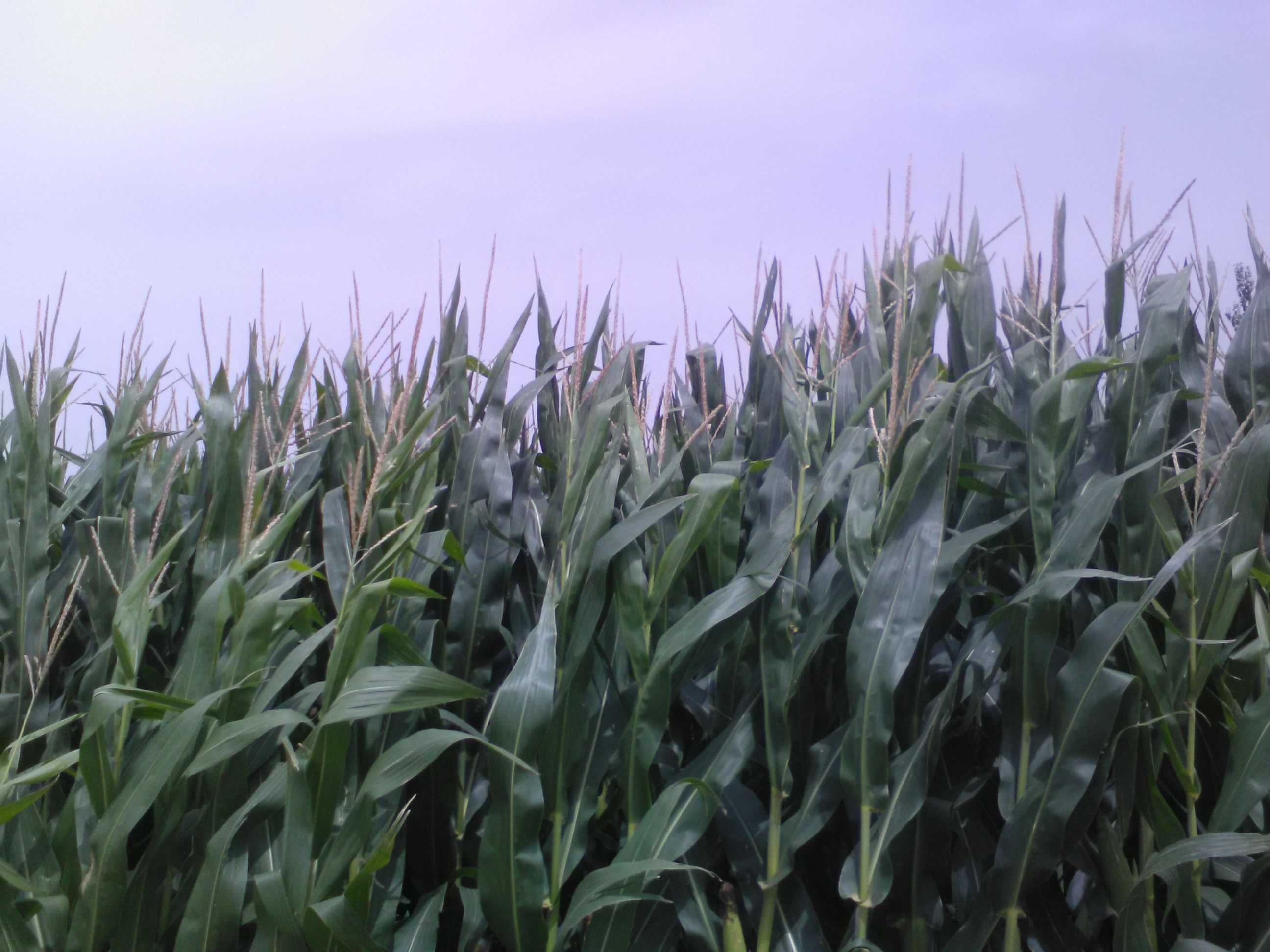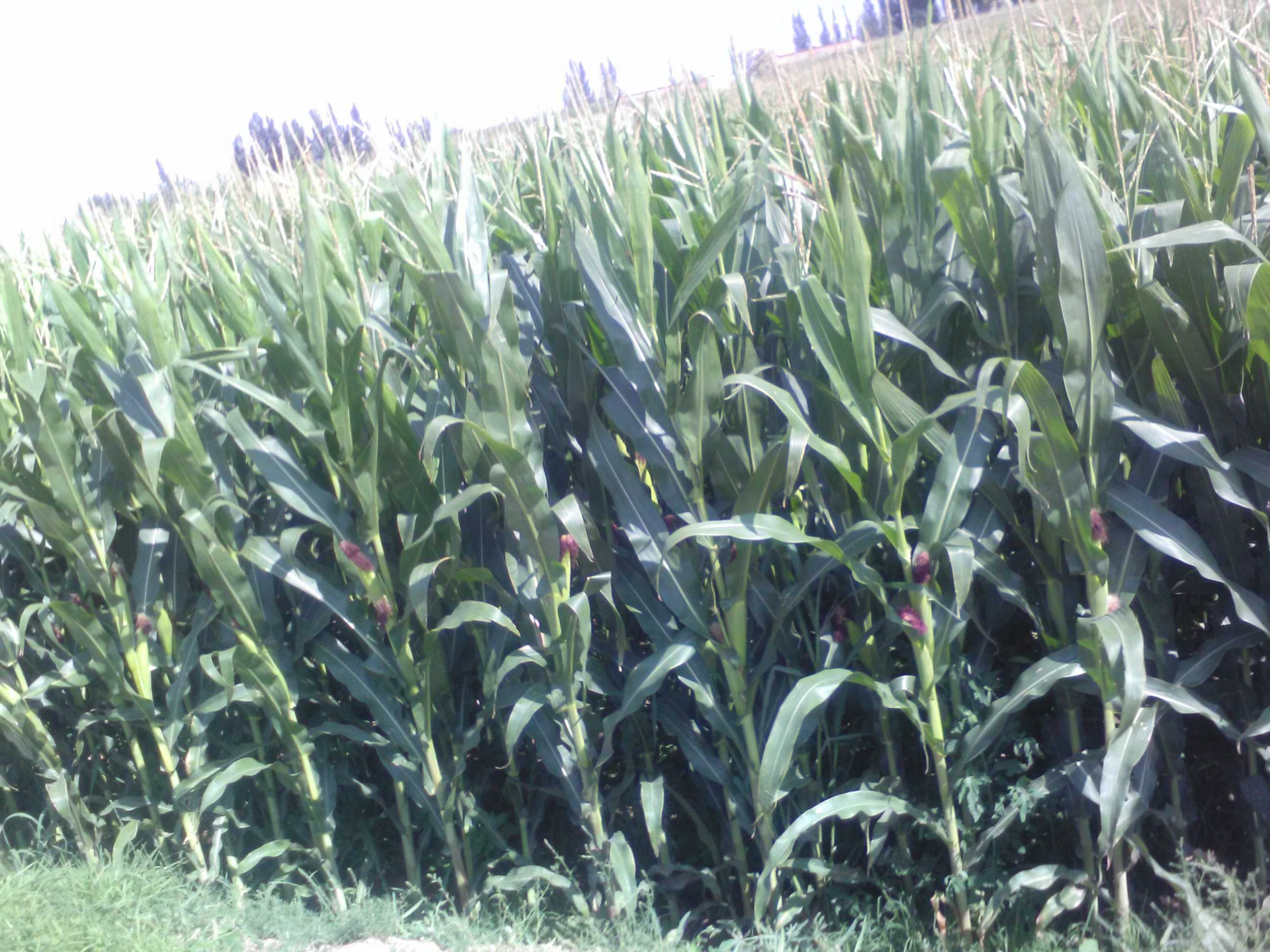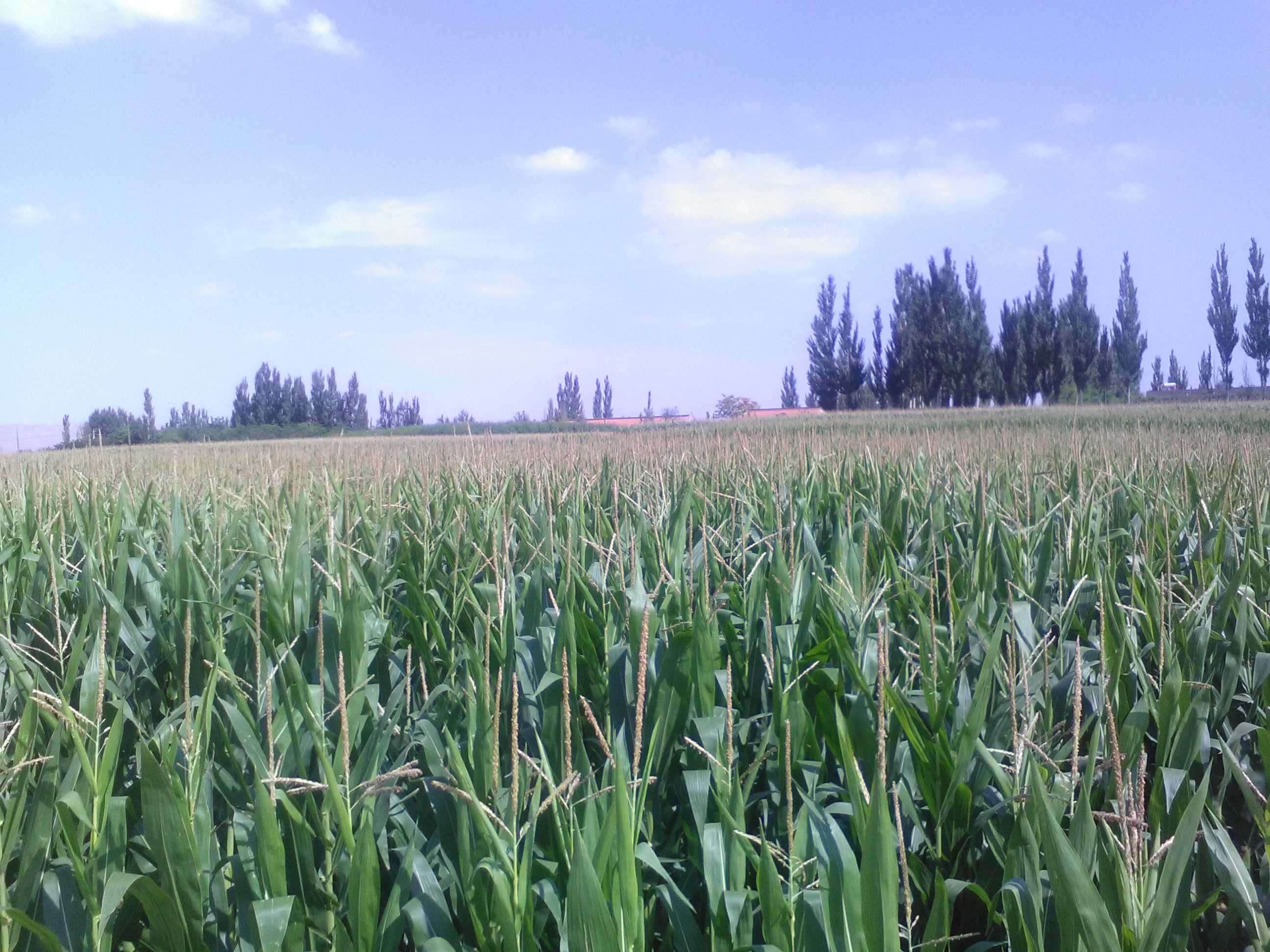 田野里,那一望无际的,青翠欲滴的植被就是玉米的生产地。走近玉米地,那玉米的独一无二的香味,夹杂着青翠的绿叶的清香扑鼻而来。一阵风吹过脸颊,就连风中也有那独特的香味。放眼望去,那一排排整齐的玉米,像守卫的士兵,昂首挺胸地站在那里,并且手握"兵器",一丝不苟,认认真真的保卫着自己的家园——那神圣不可侵犯的土地。每一个士兵手中的"兵器"都十分饱满:有的已经等不及了,张大了嘴,露出了一排排金黄色的牙齿,笑着注视着远方;有的则在努力地生长中,没有闲工夫去搭理其他的事,只是自顾自的顽强地生长着;有的像老爷爷,长出了长长的胡须,在风中摇曳。